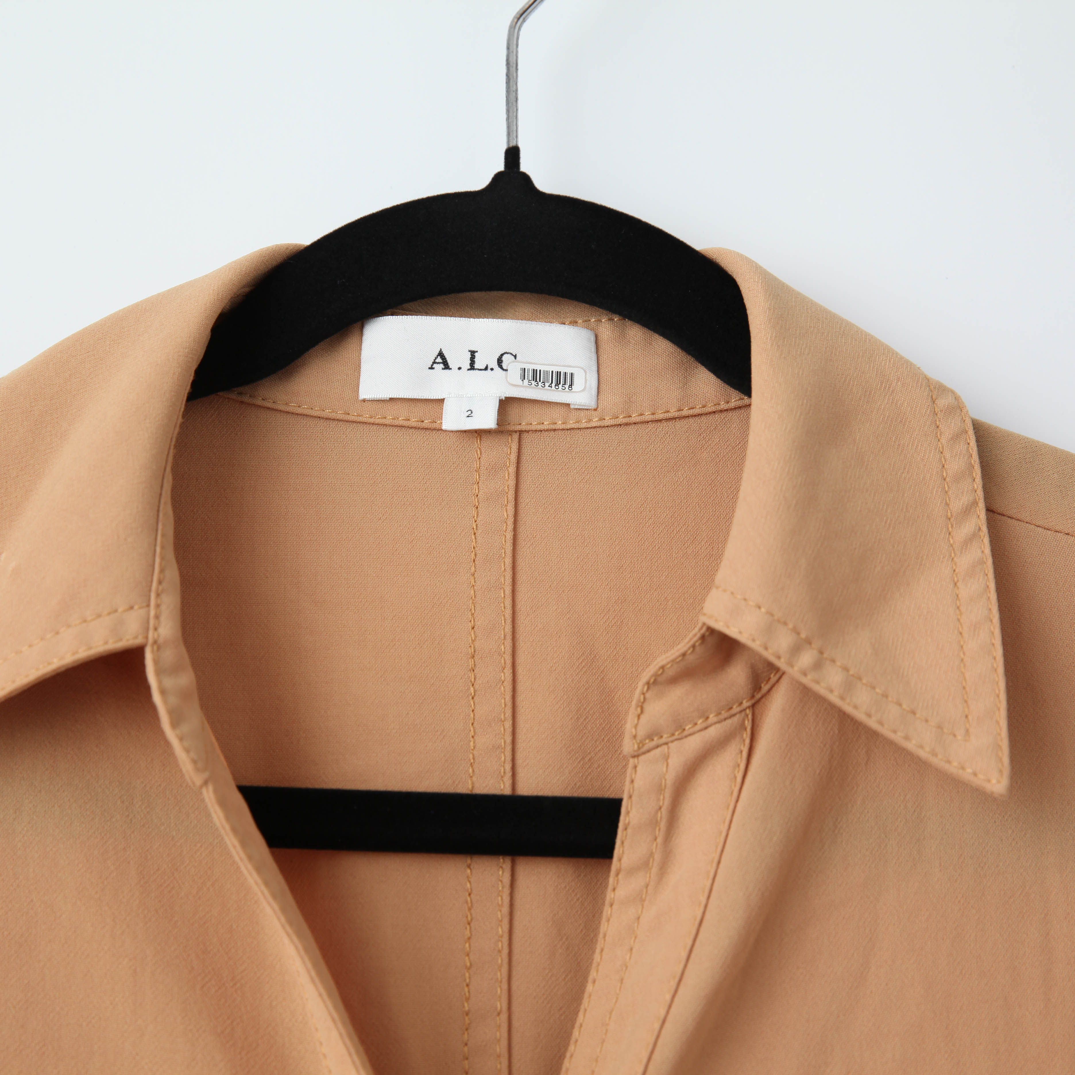 Effortlessly sophisticated, the Florence Dress by A.L.C. blends modern tailoring with a playful twist. Crafted from textured raffia fabric, it features a button-front bodice, flap chest pockets, and a pleated peek-a-boo skirt for subtle movement and charm. Perfect for daytime polish or evening ease — a versatile piece that embodies understated luxury.