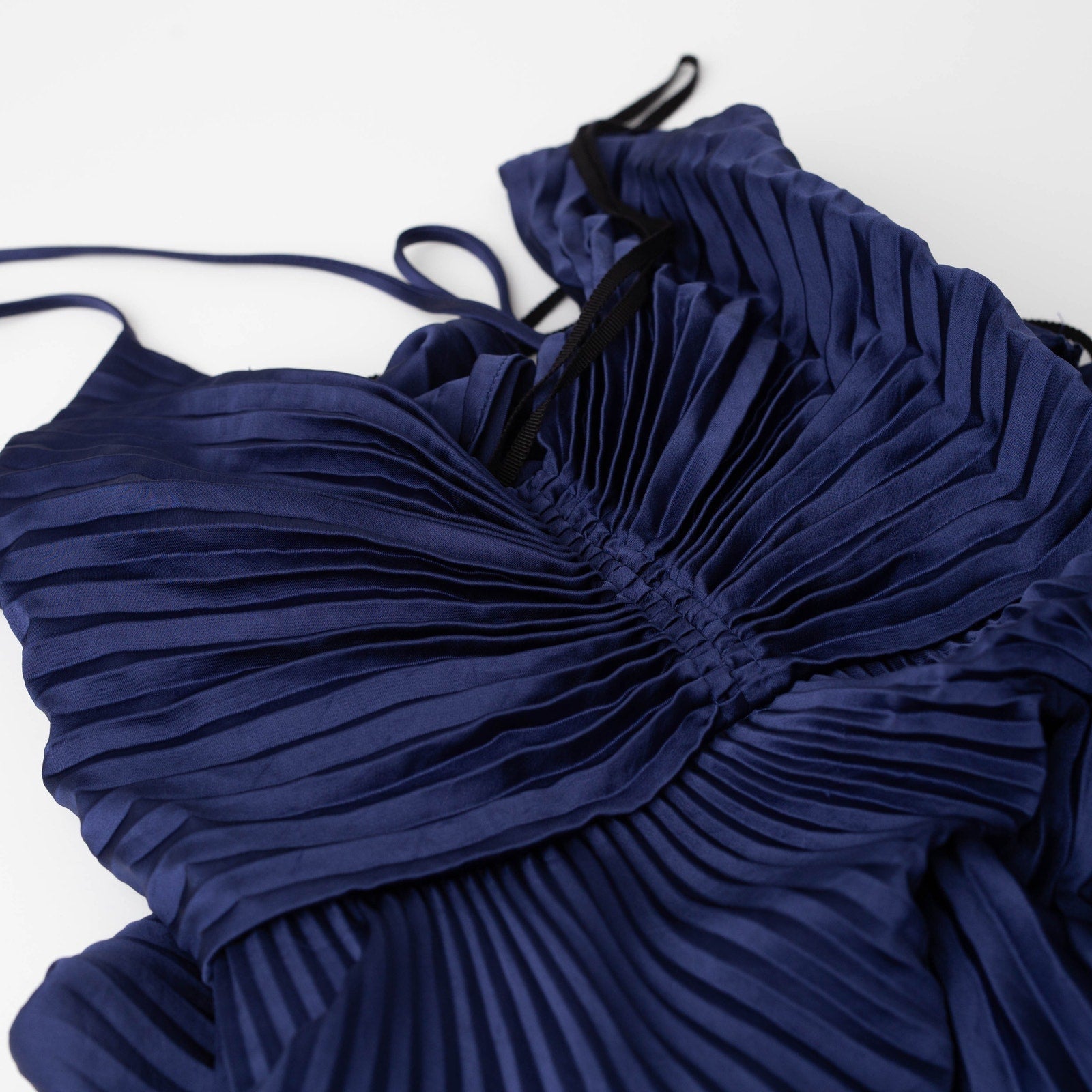 A.L.C. Aries Navy Pleated Satin Maxi Dress
