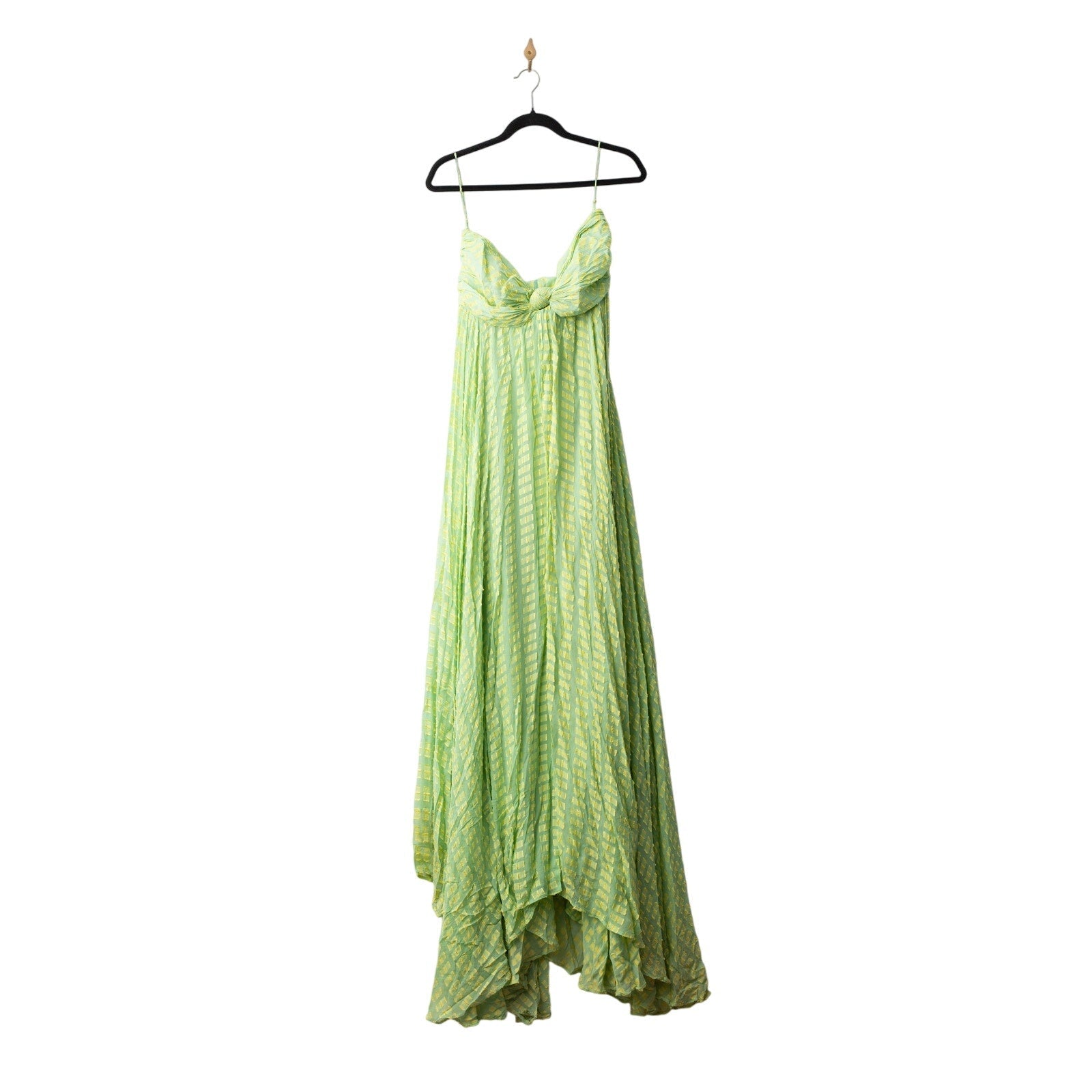 Details: Green abstract (Self: 74% Silk, 26% Viscose. Lining: 95% Polyester, 5% Elastane). Gown. Strapless. Sleeveless. Back zipper closure.