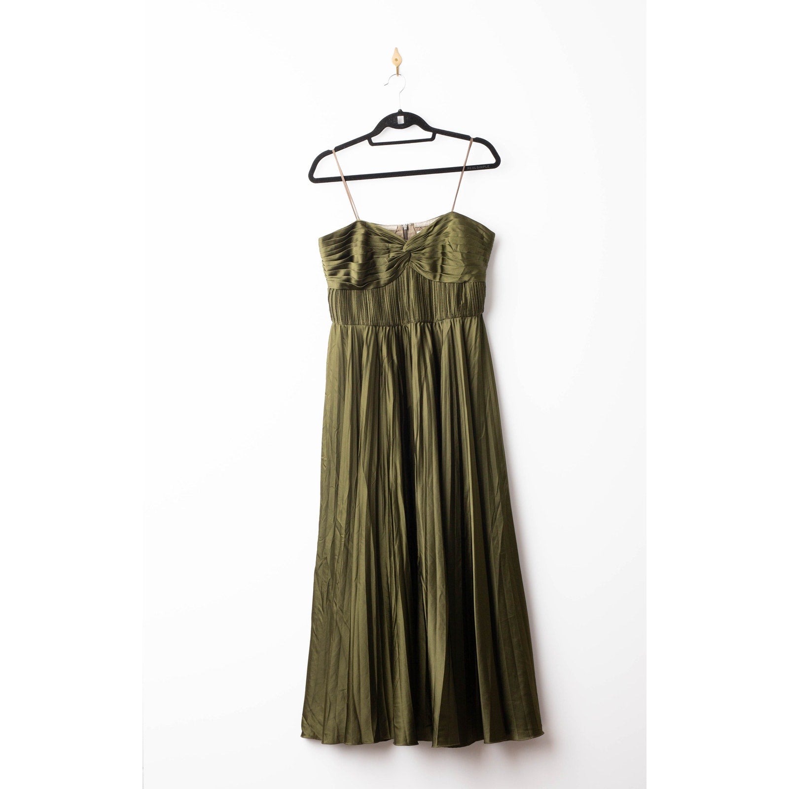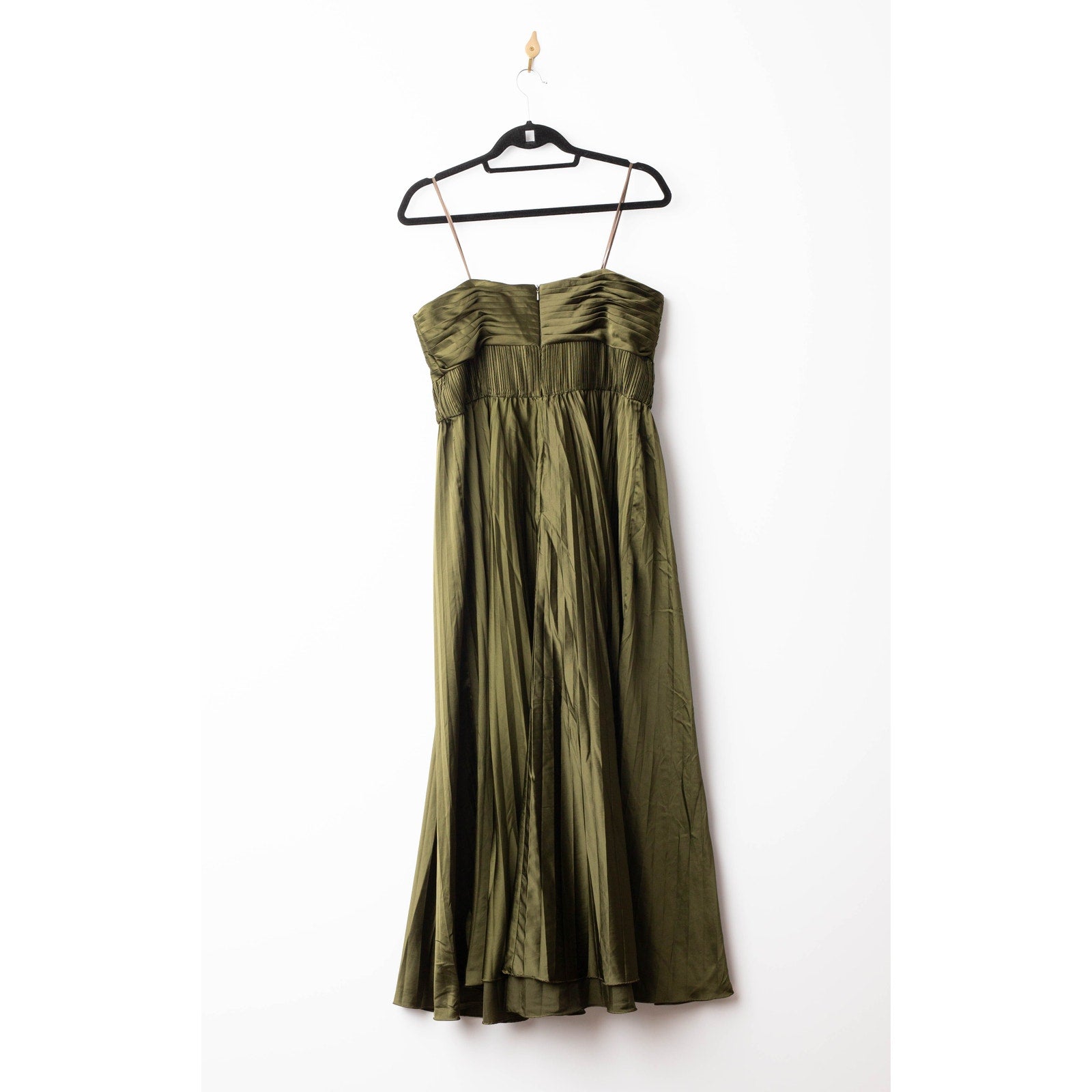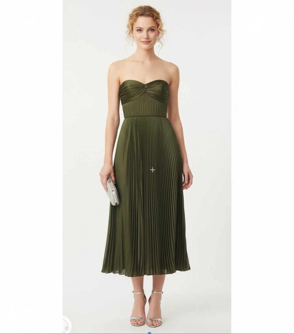 A timeless statement of elegance, the Belle Dress by AMUR features a corseted bodice and silky pleating that create a beautifully sculpted silhouette. Crafted from luxurious green satin made of 100% recycled polyester, this dress combines sophistication with sustainable design — perfect for weddings, galas, or special evenings.
