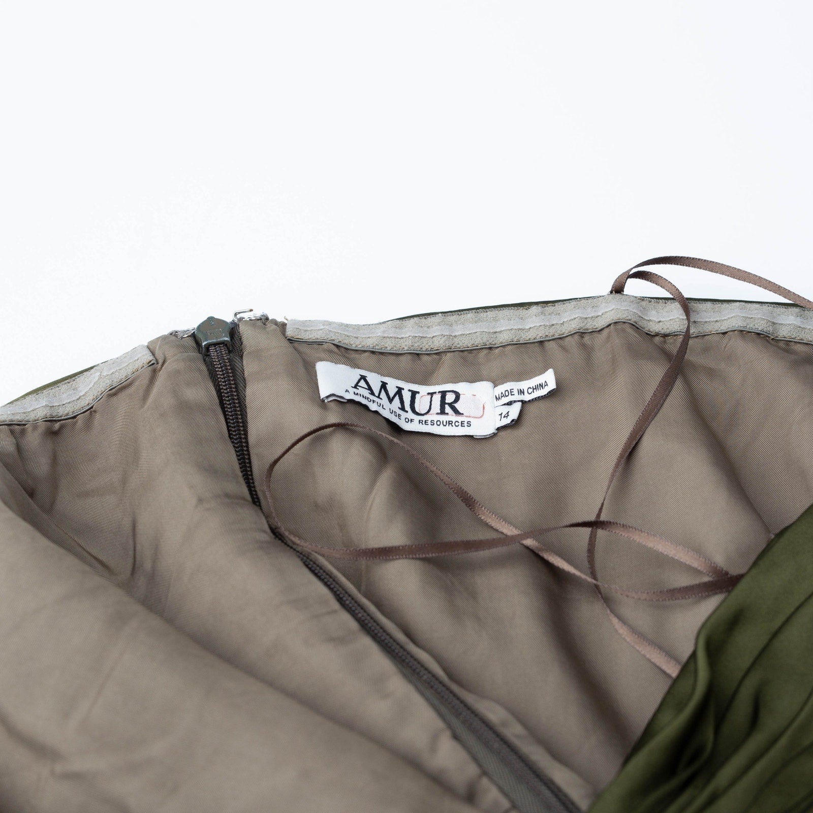 AMUR Green Satin Belle Dress