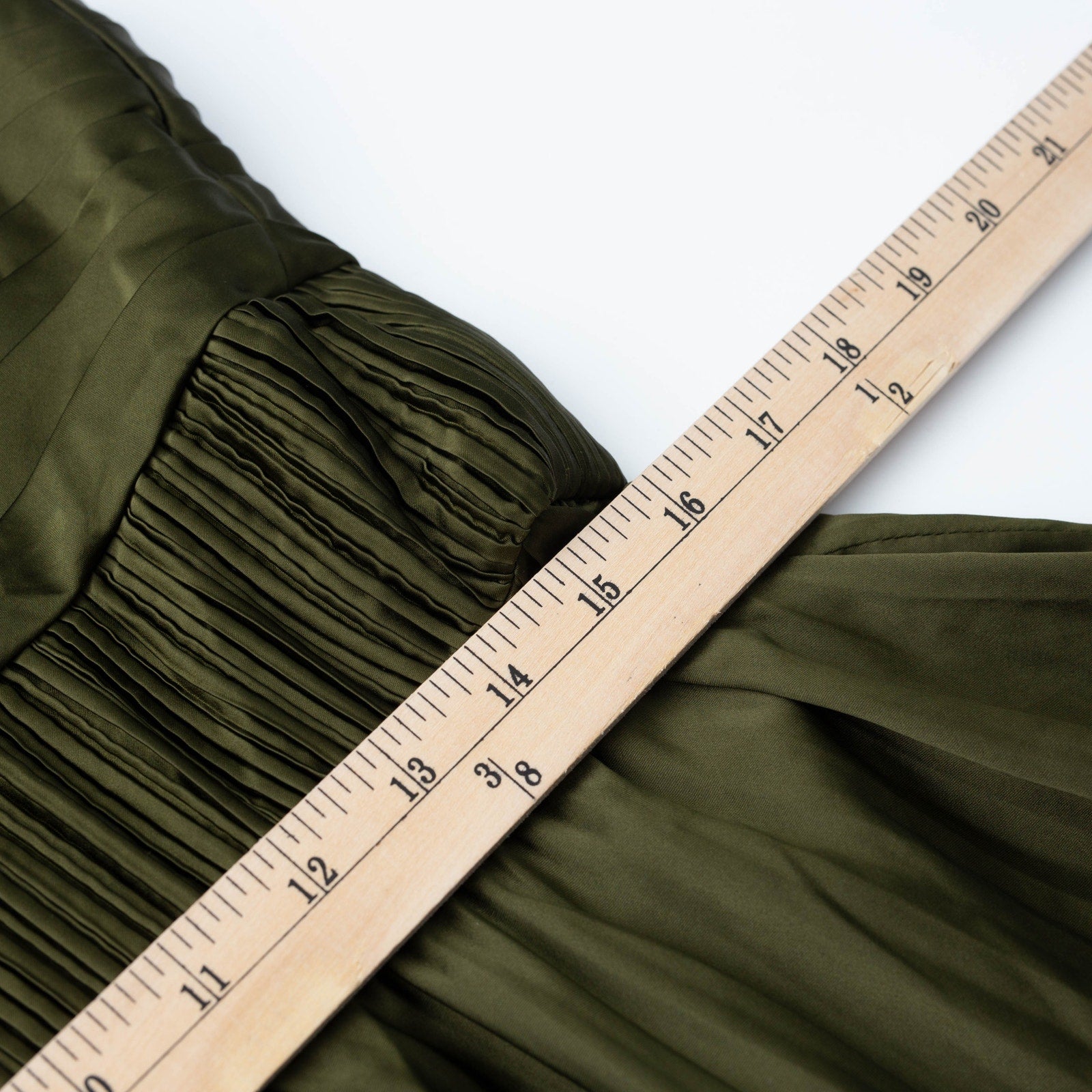 Bodice: Corseted with pleating