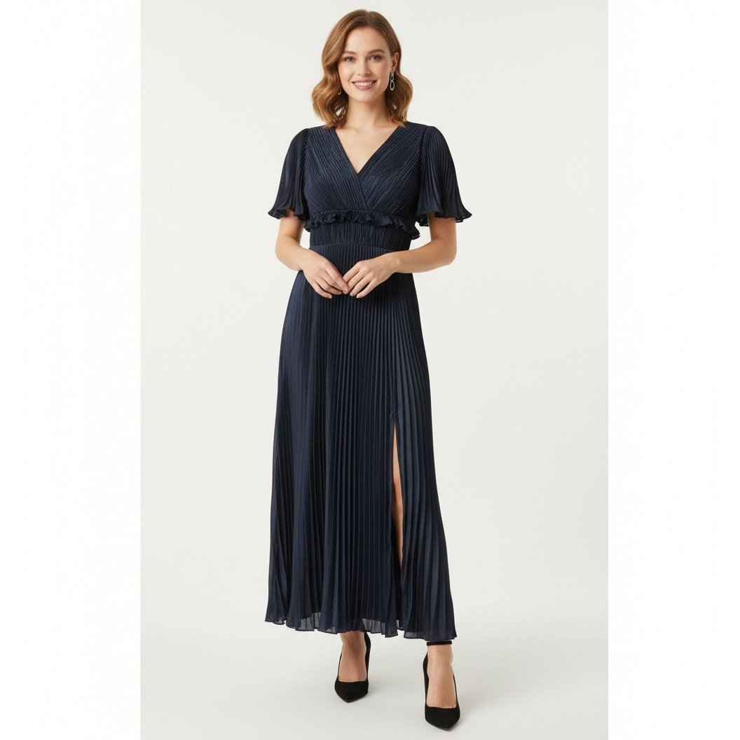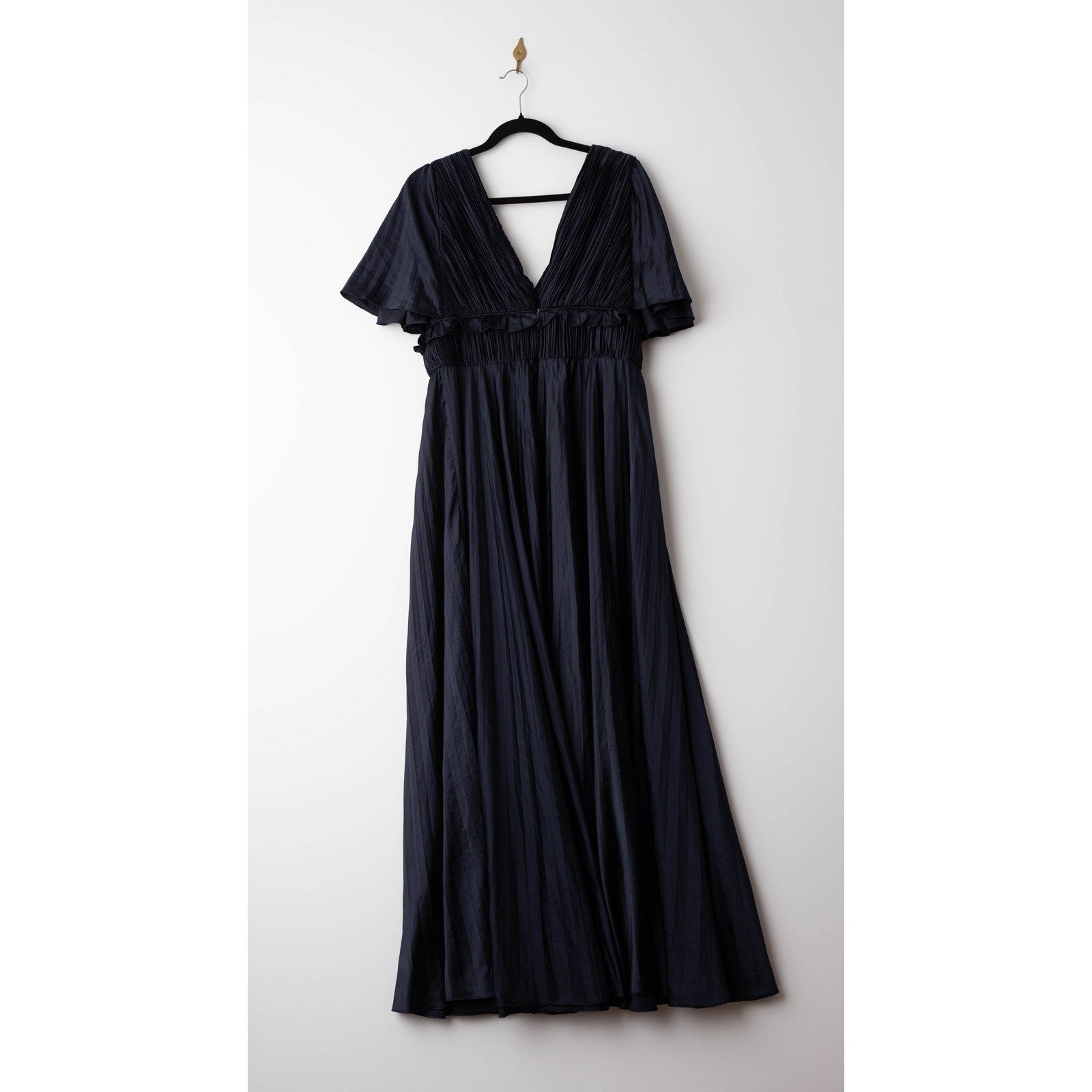 The Suze Gown by AMUR exudes timeless elegance in lustrous blue satin. Designed with a flattering A-line silhouette, cap sleeves, and a graceful V-neckline, this gown perfectly balances modern sophistication with classic femininity — ideal for weddings, galas, or formal occasions.