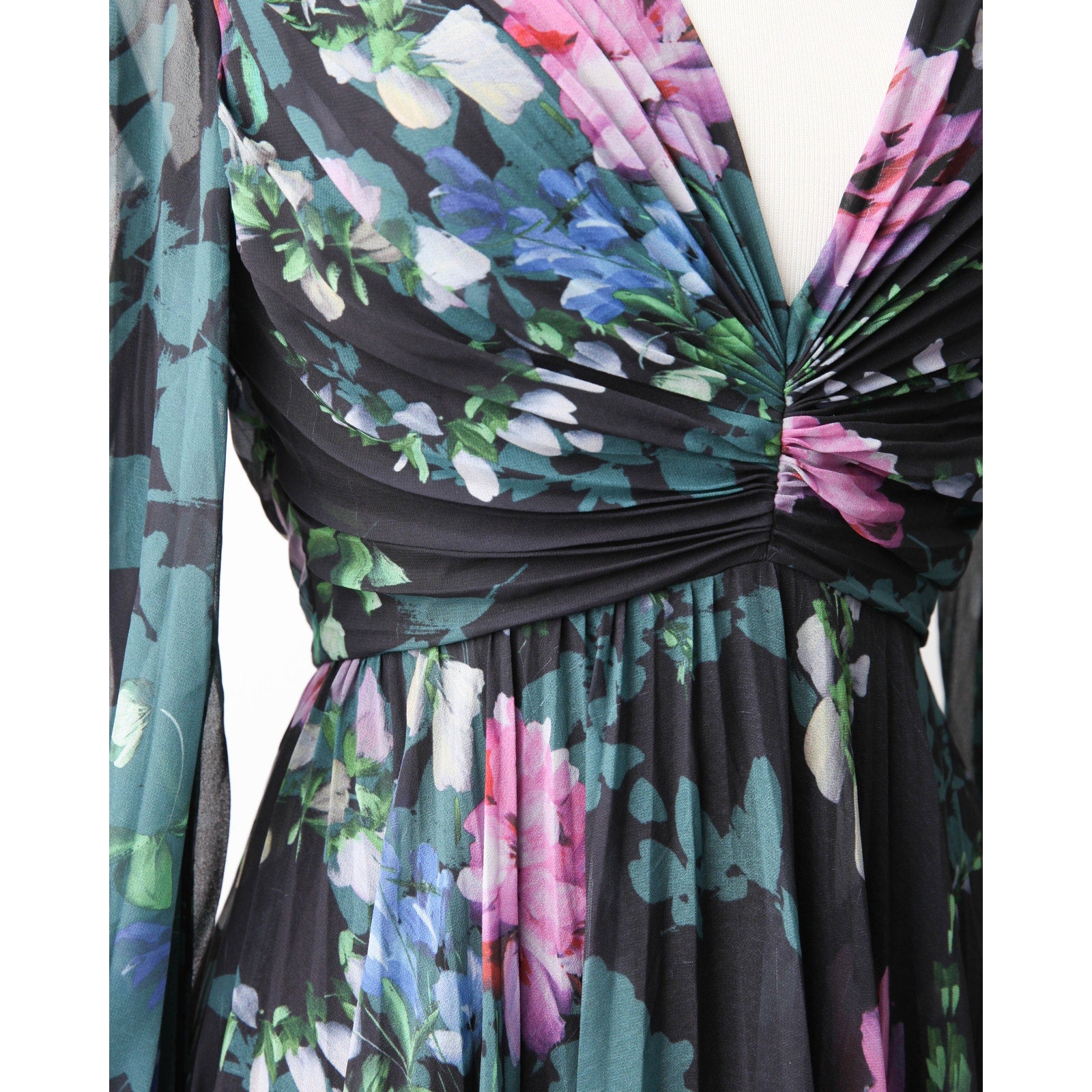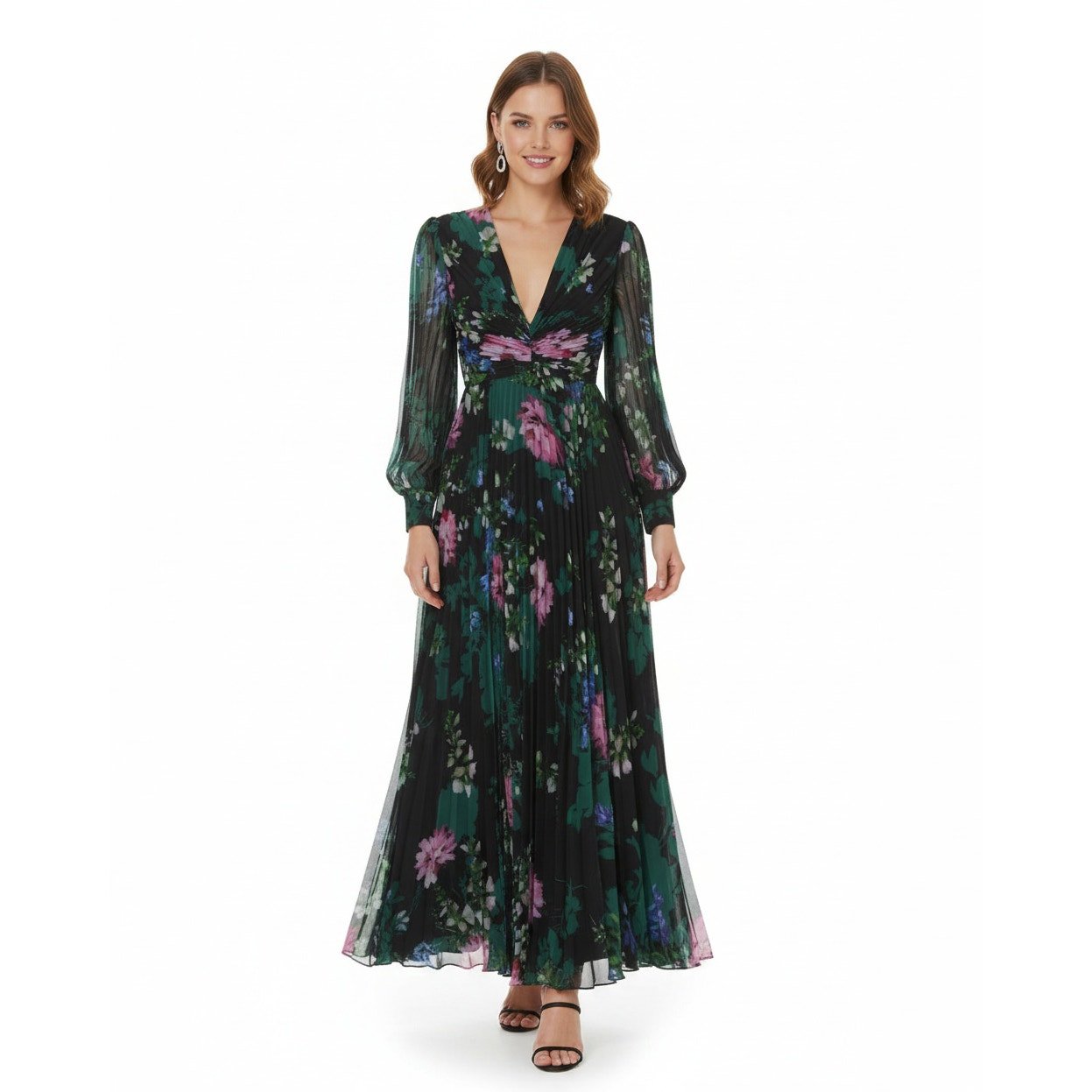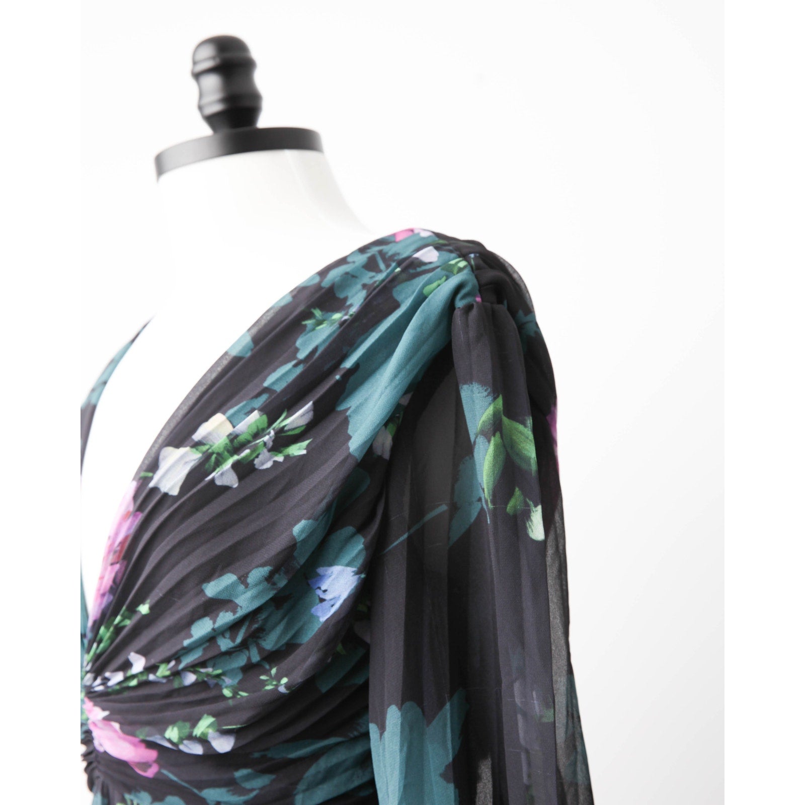 Ruffles and pleats compete for attention in this stunning gown by Badgley Mischka, blending elegance with bold femininity. Crafted from floral-printed polyester, this piece offers a refined silhouette with romantic texture and timeless appeal — perfect for evening events or formal occasions.