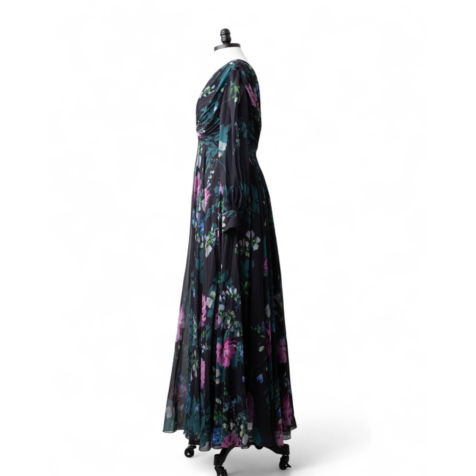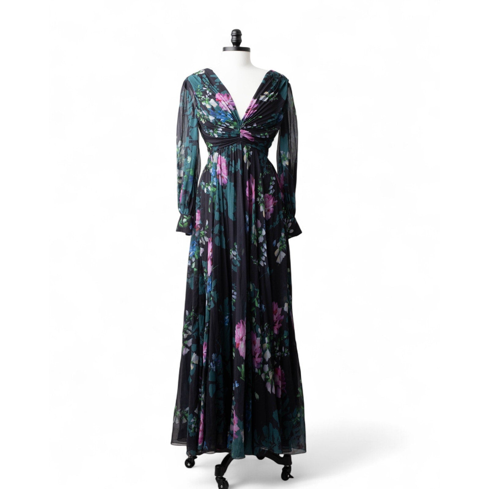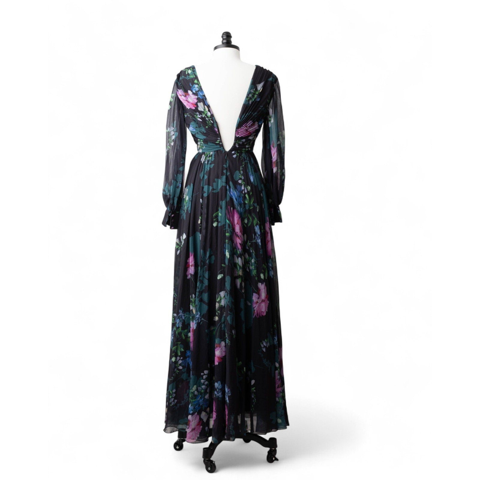 Badgley Mischka Black Floral Ruffled Gown (Size 0)