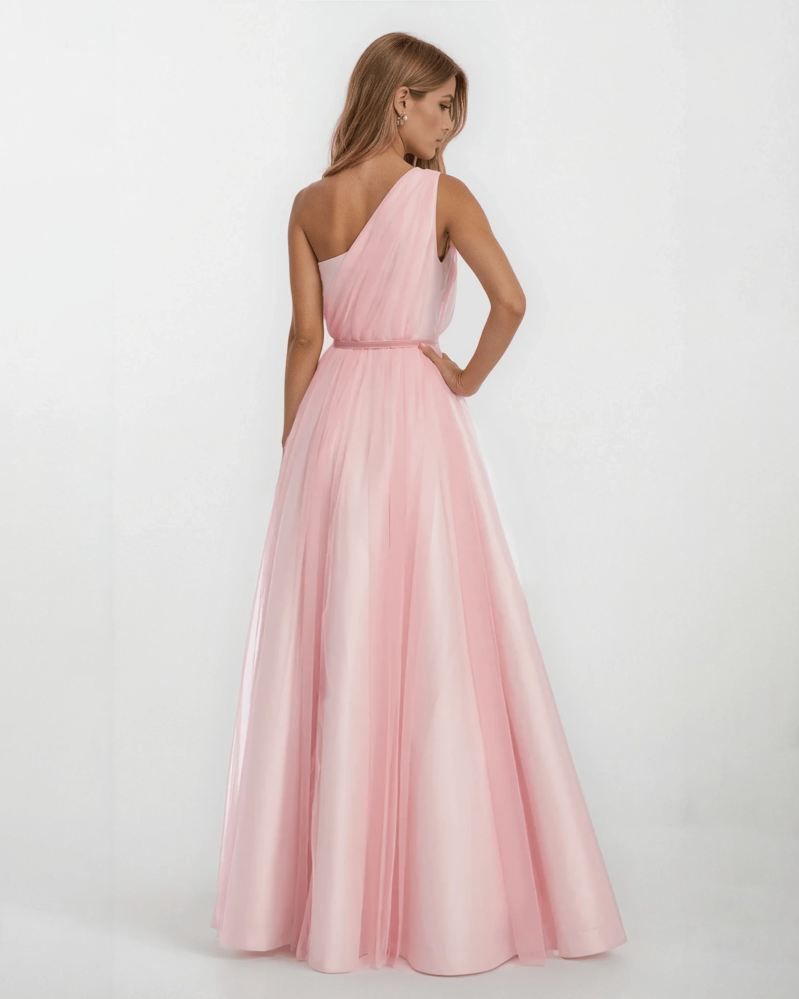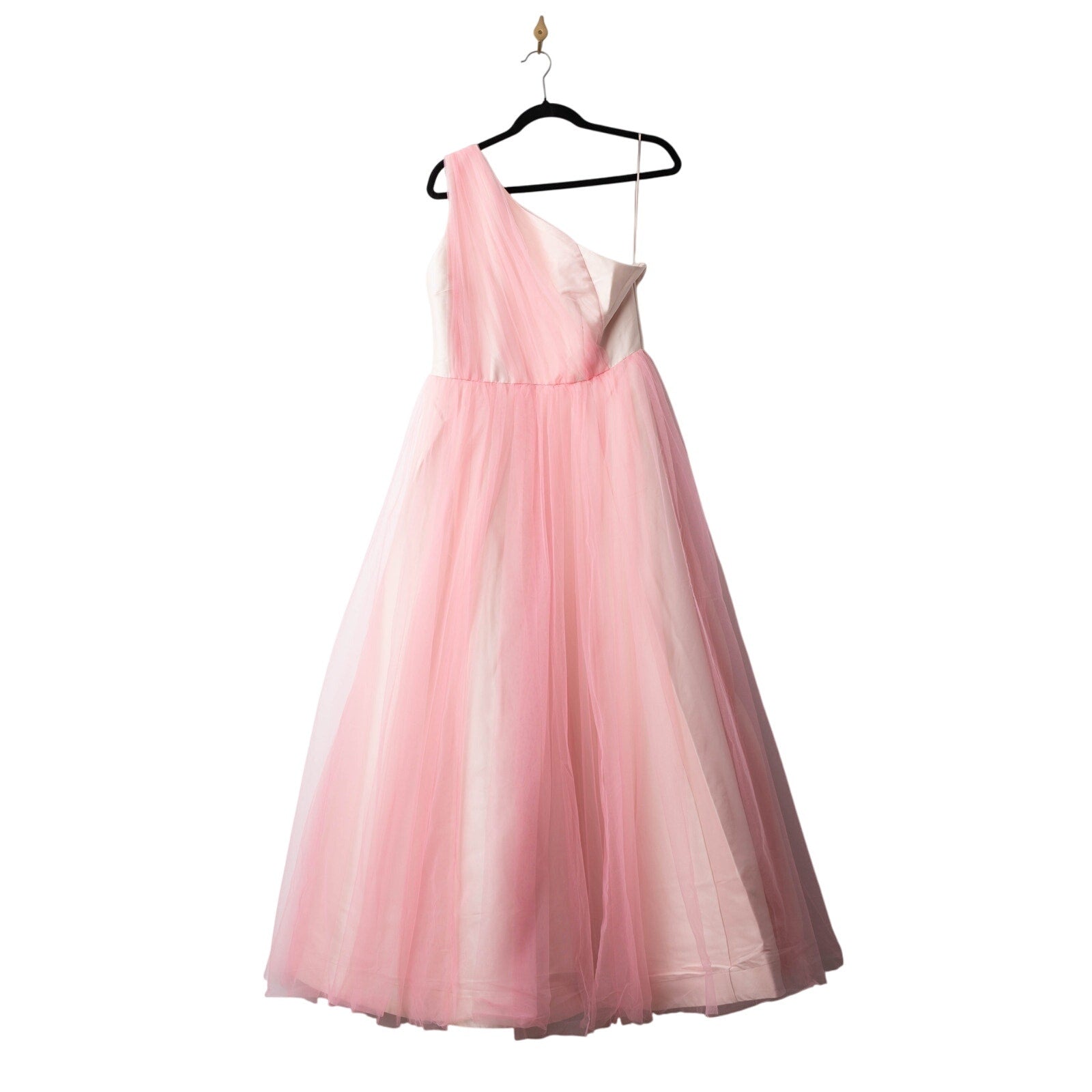 Badgley Mischka Pink One Shoulder Tulle Gown