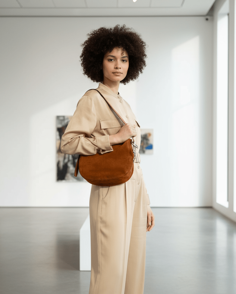 The ‘Knight Small’ Shoulder Bag by Burberry embodies refined British craftsmanship with a modern twist. Expertly crafted from rich calf suede, this elegant design features a detachable and adjustable strap with a signature horse-shaped clip, adding a touch of sculptural sophistication. Finished with silver-tone hardware and a spacious interior, it’s a timeless statement piece for any occasion.