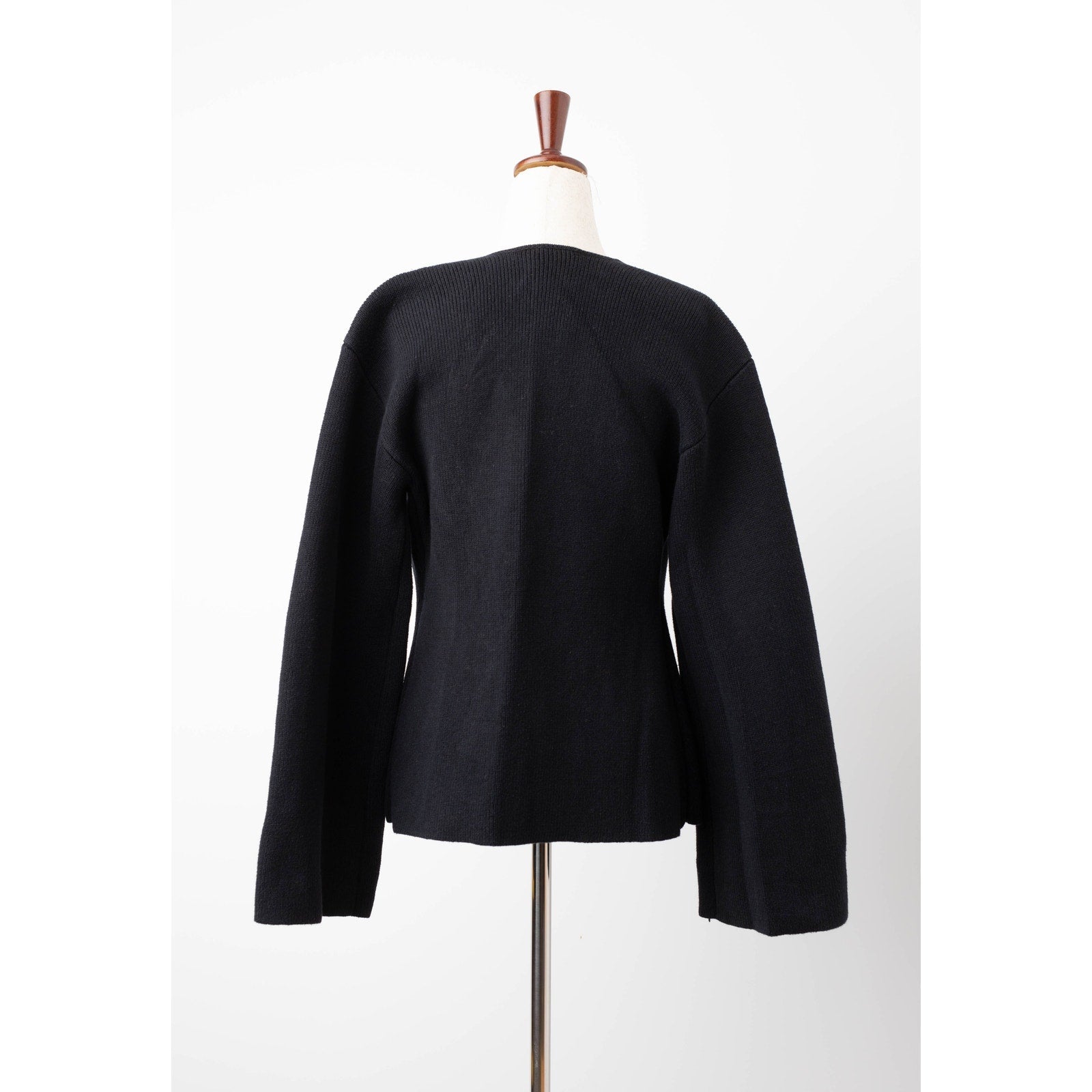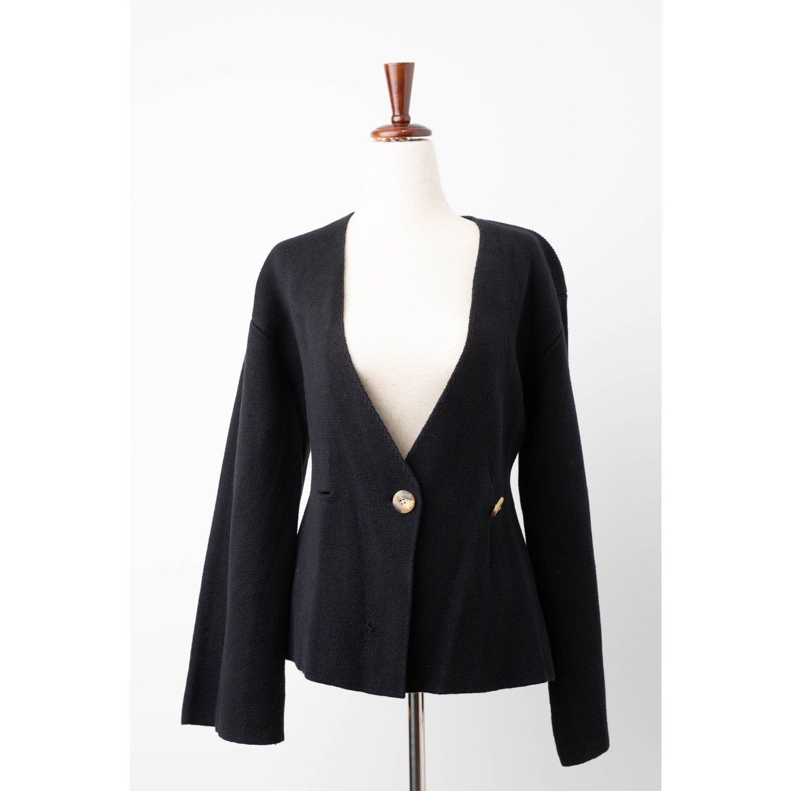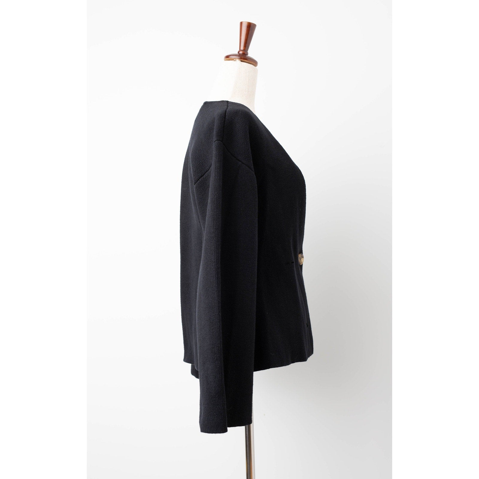 Black. (54% Wool, 44% Cotton, 2% Elastane). Knit. Deep V neckline; double-breasted front. Long Sleeves. Imported.