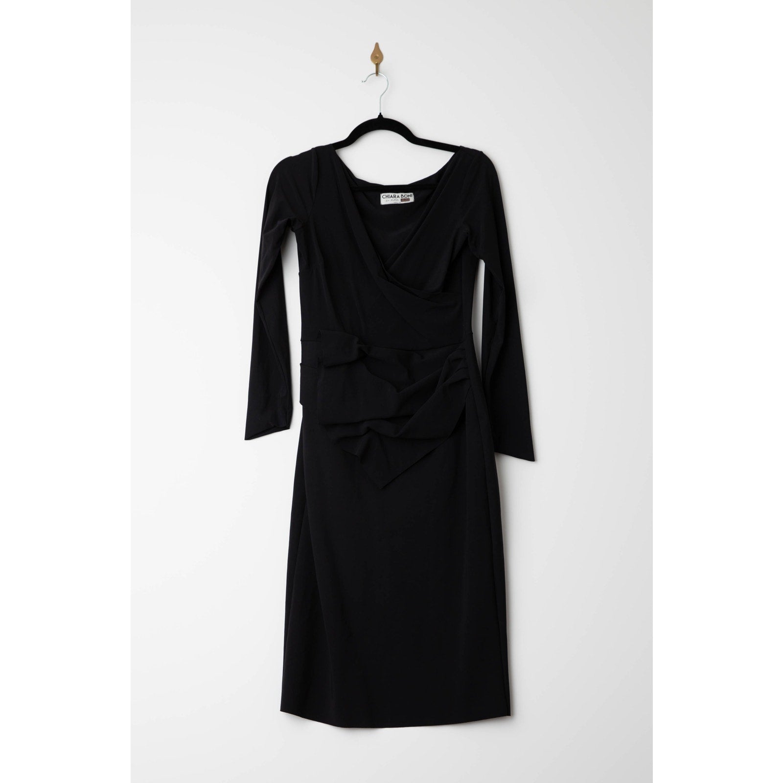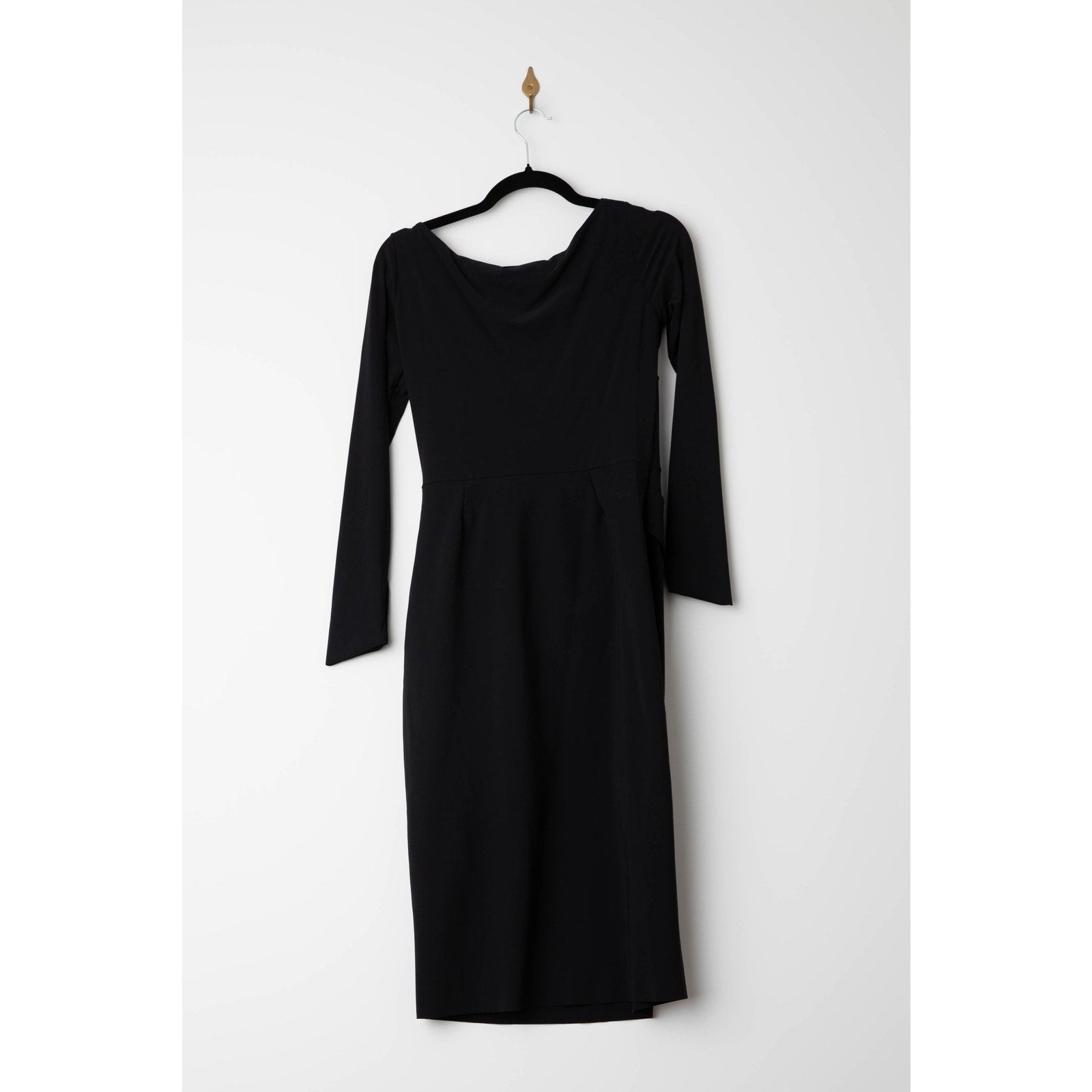Black jersey (72% Polyamide, 28% Elastane). Sheath. Long sleeves. V-neckline. Step in and pull up style.