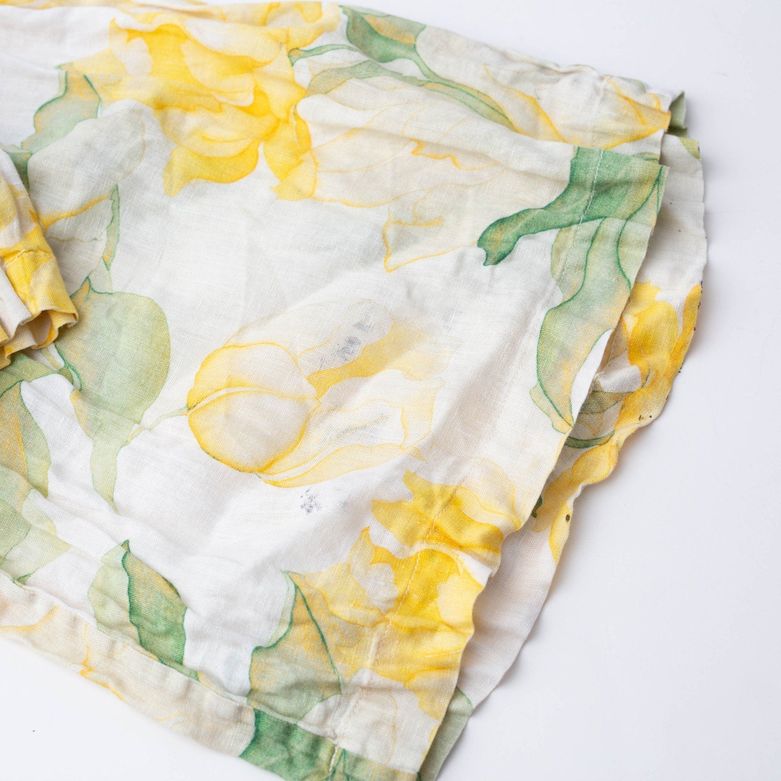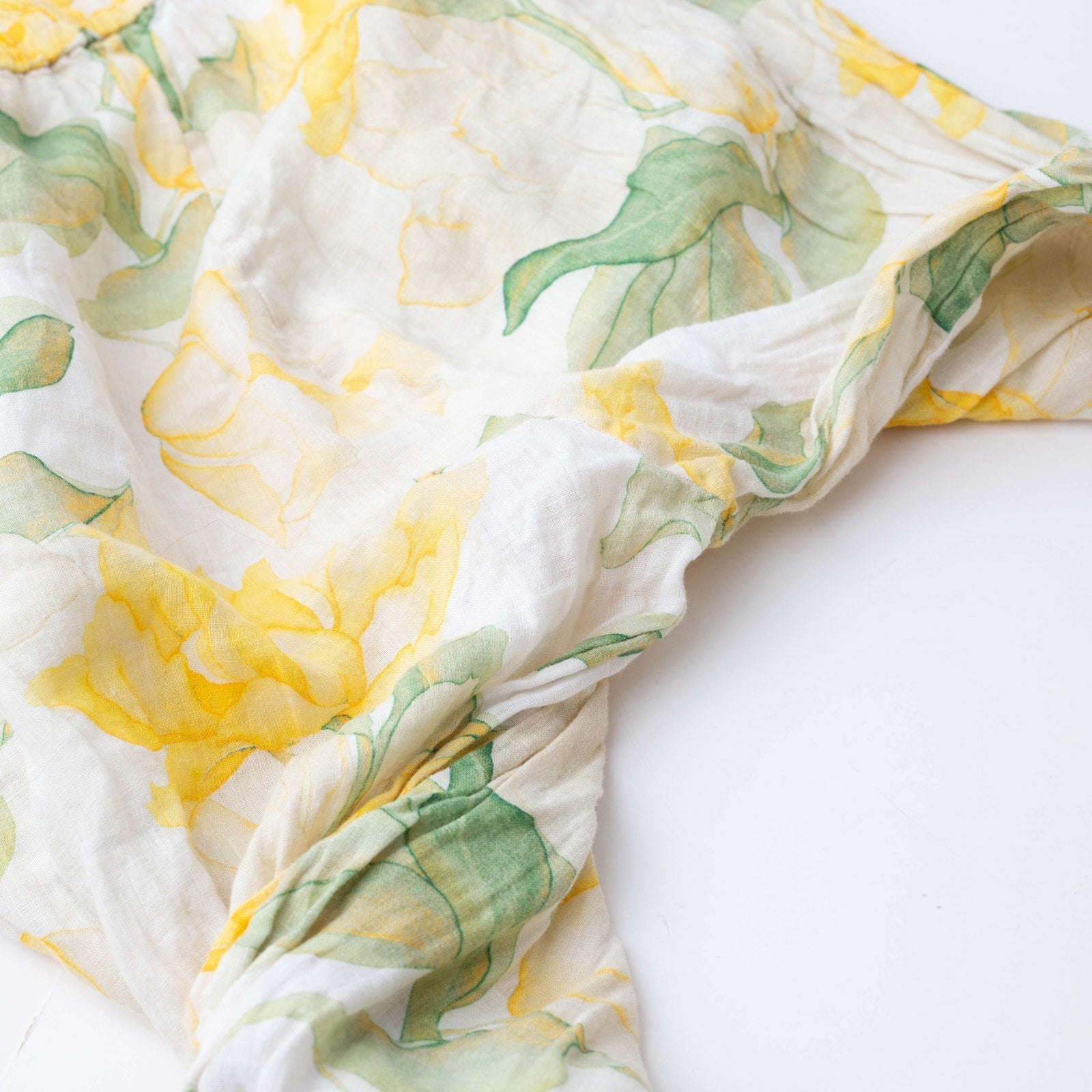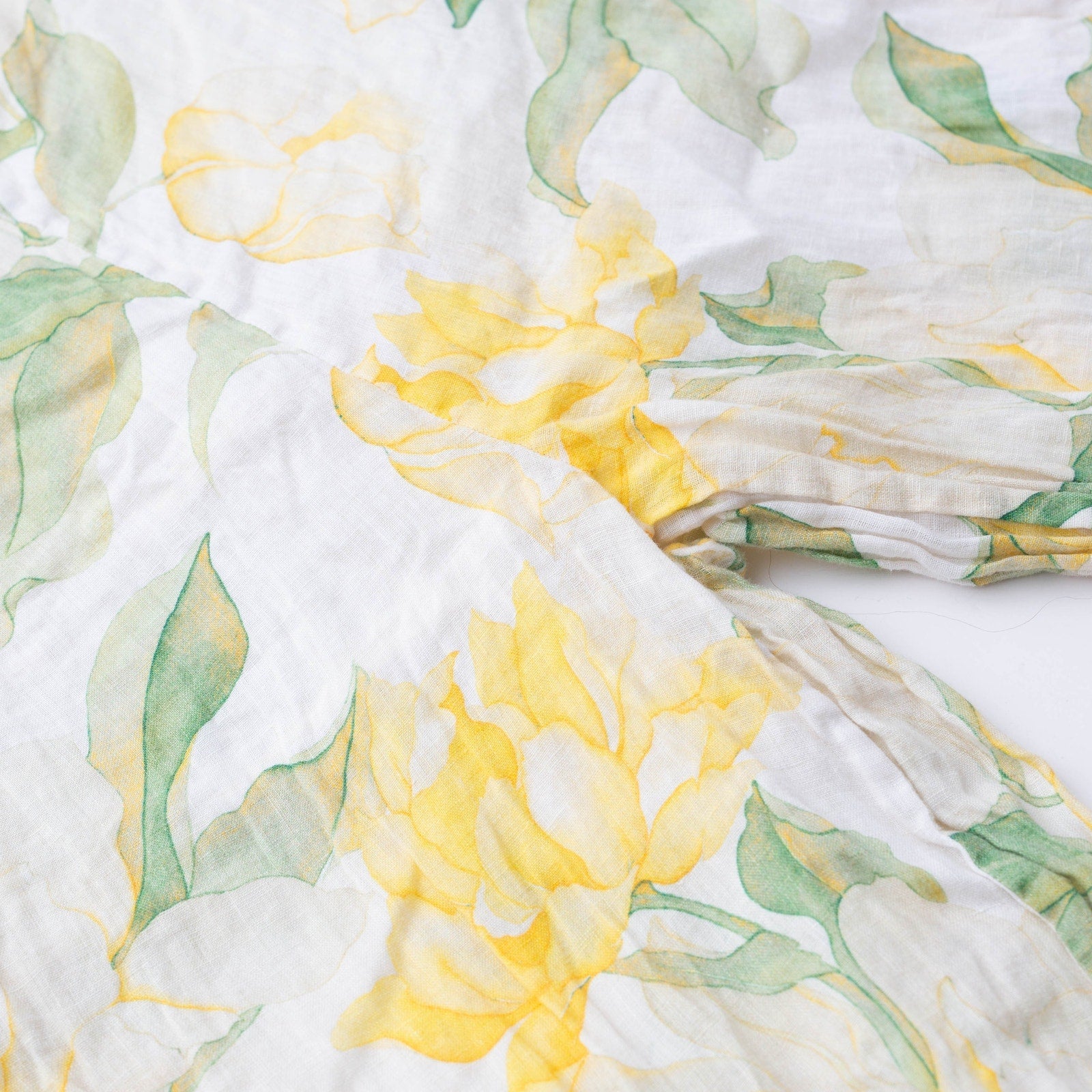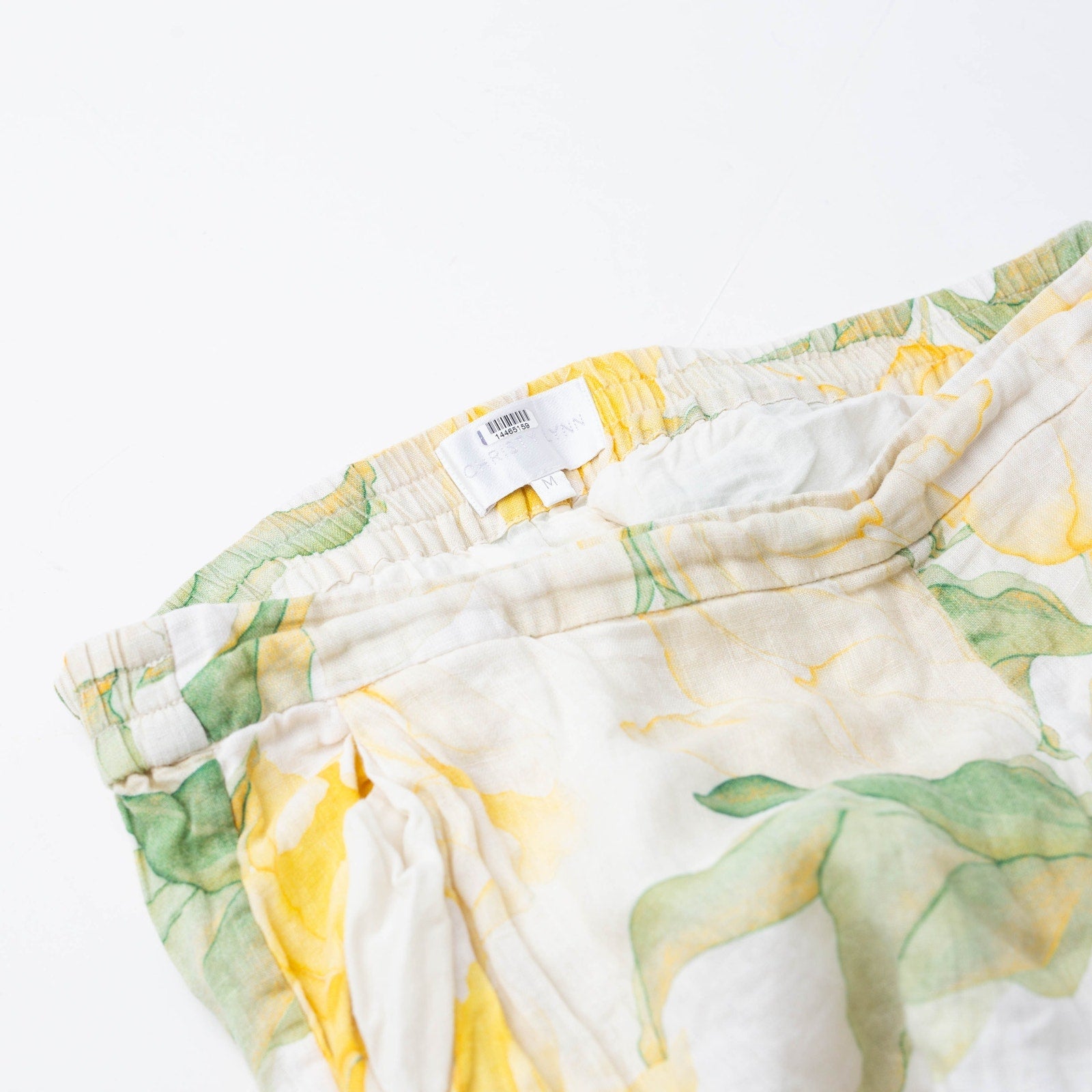 Yellow floral linen (100% Linen, Lining: 100% Cotton). Trousers. Pull on.