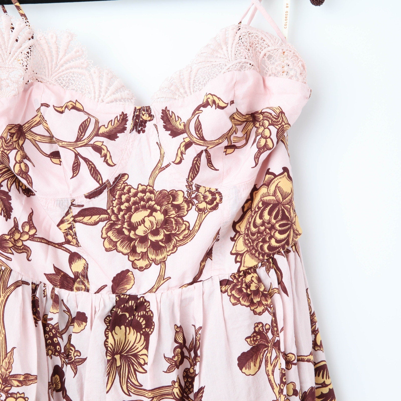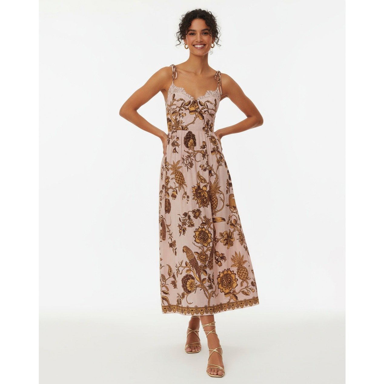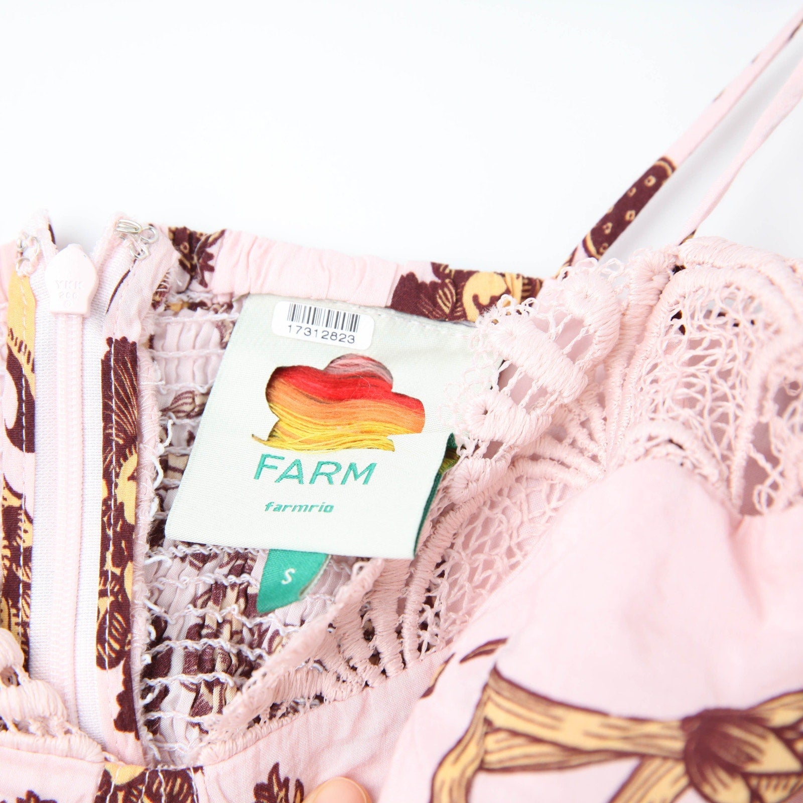 FARM Rio Pink Tropical Landing Lace Midi Dress