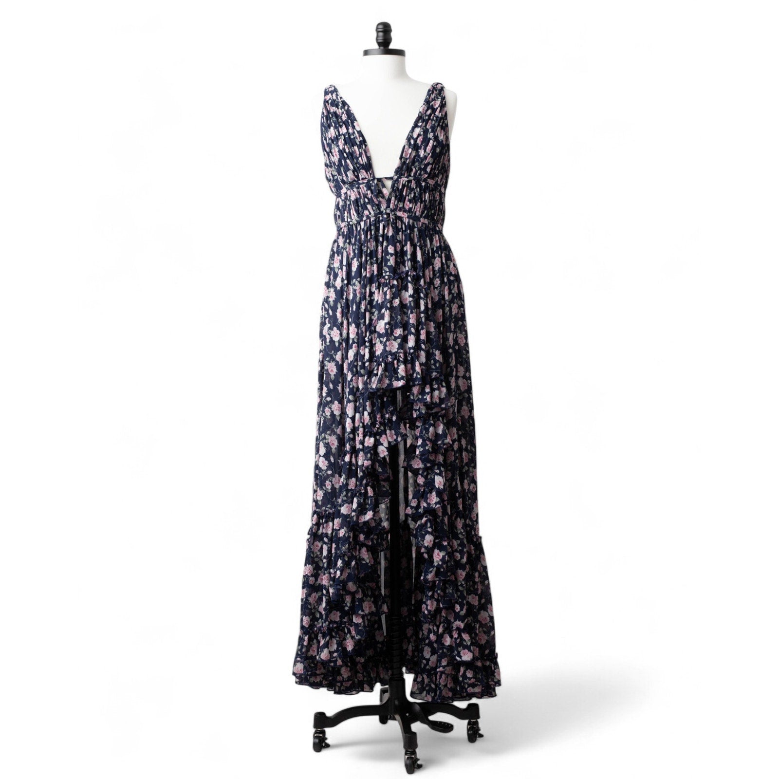 Ieena for Mac Duggal Blue Floral Chiffon Gown (Size 6)