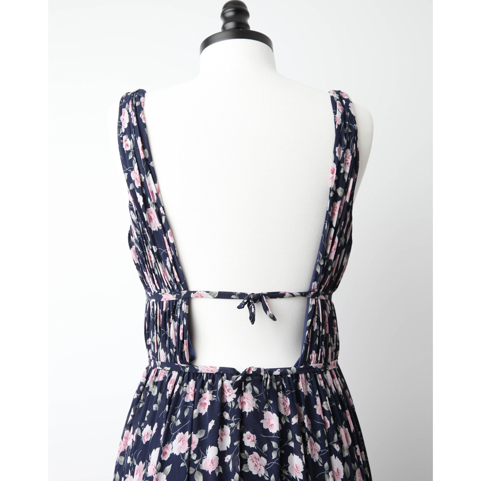 A corded waist and daring low back create a stunning silhouette in this elegant gown by Ieena for Mac Duggal. Crafted in flowing blue floral chiffon, it offers a timeless, romantic look ideal for weddings, galas, or evening events.
