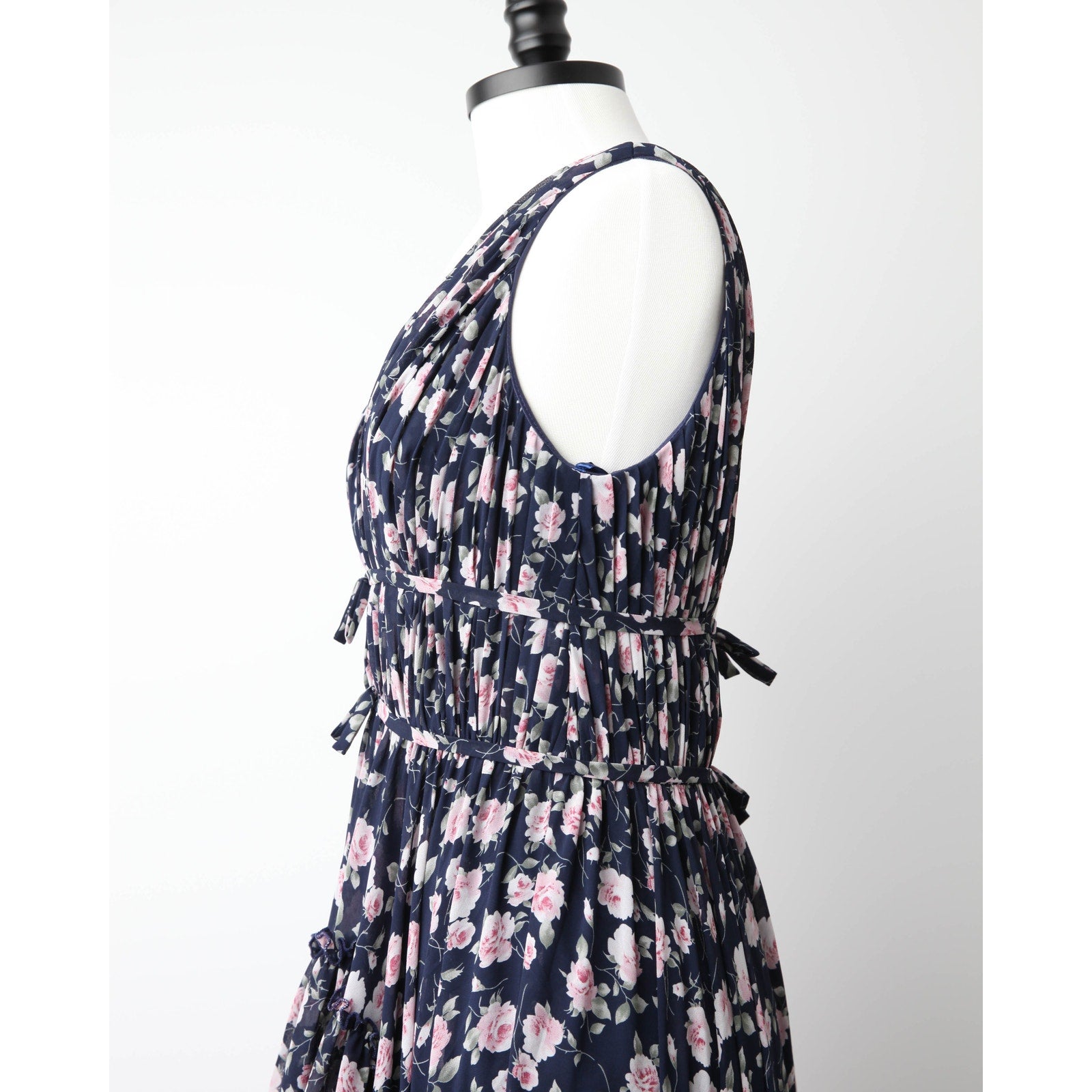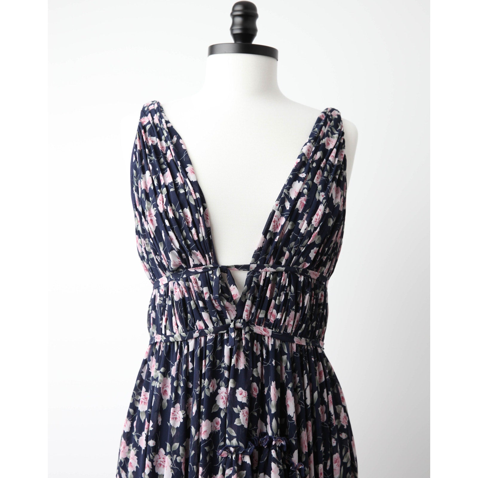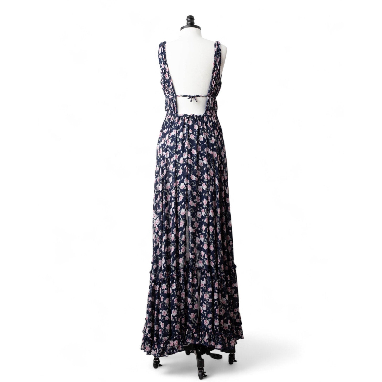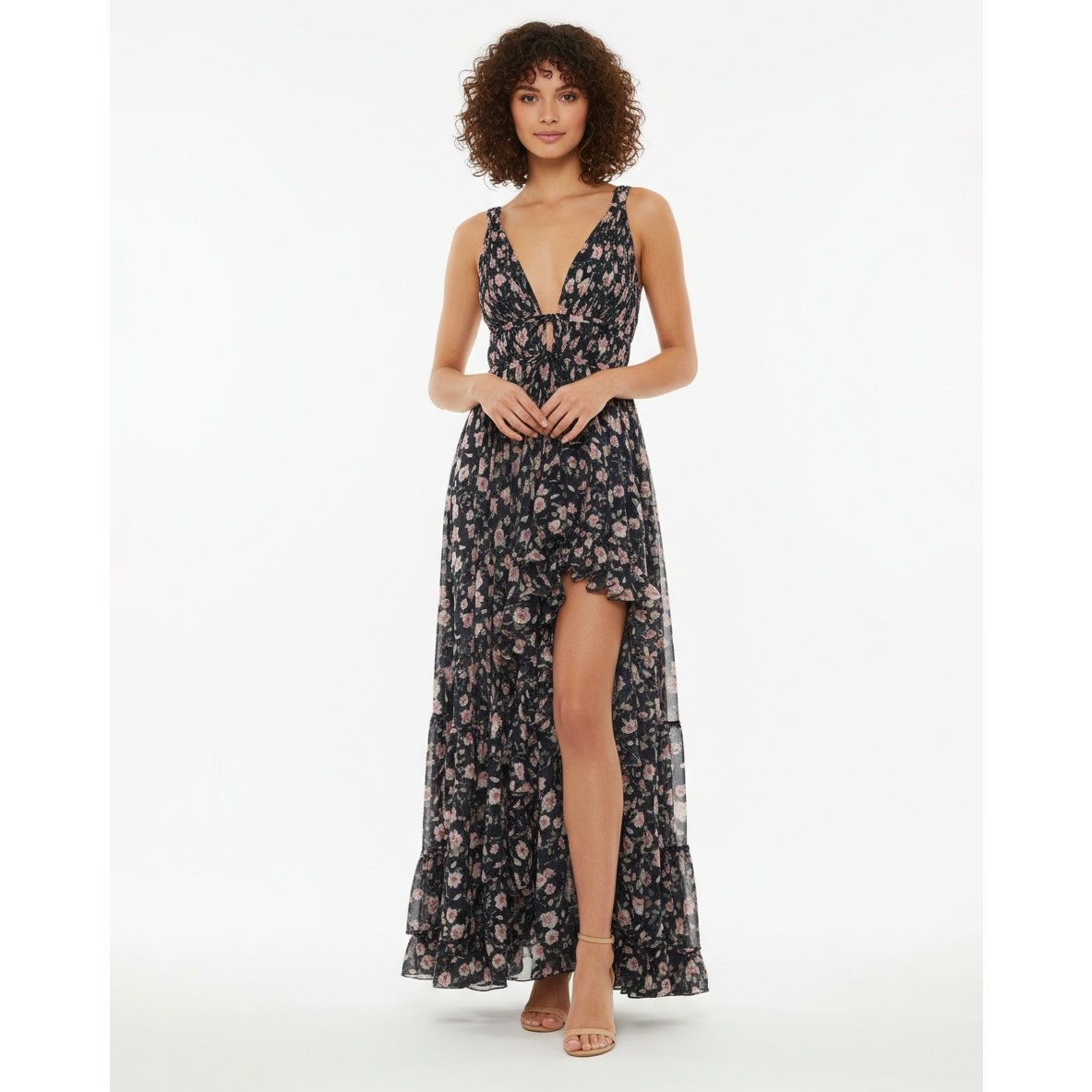 Ieena for Mac Duggal Floral Ruffled Gown in Navy