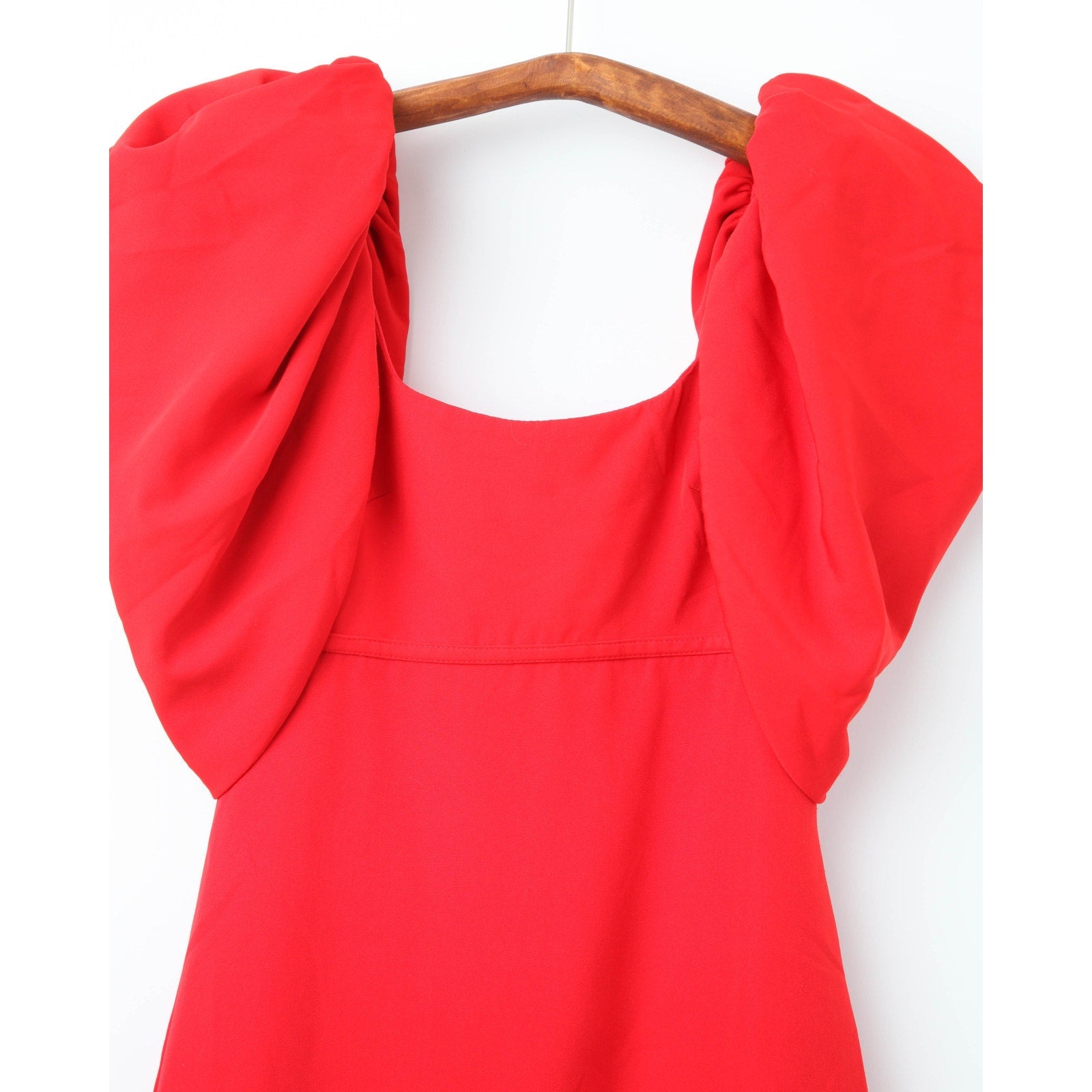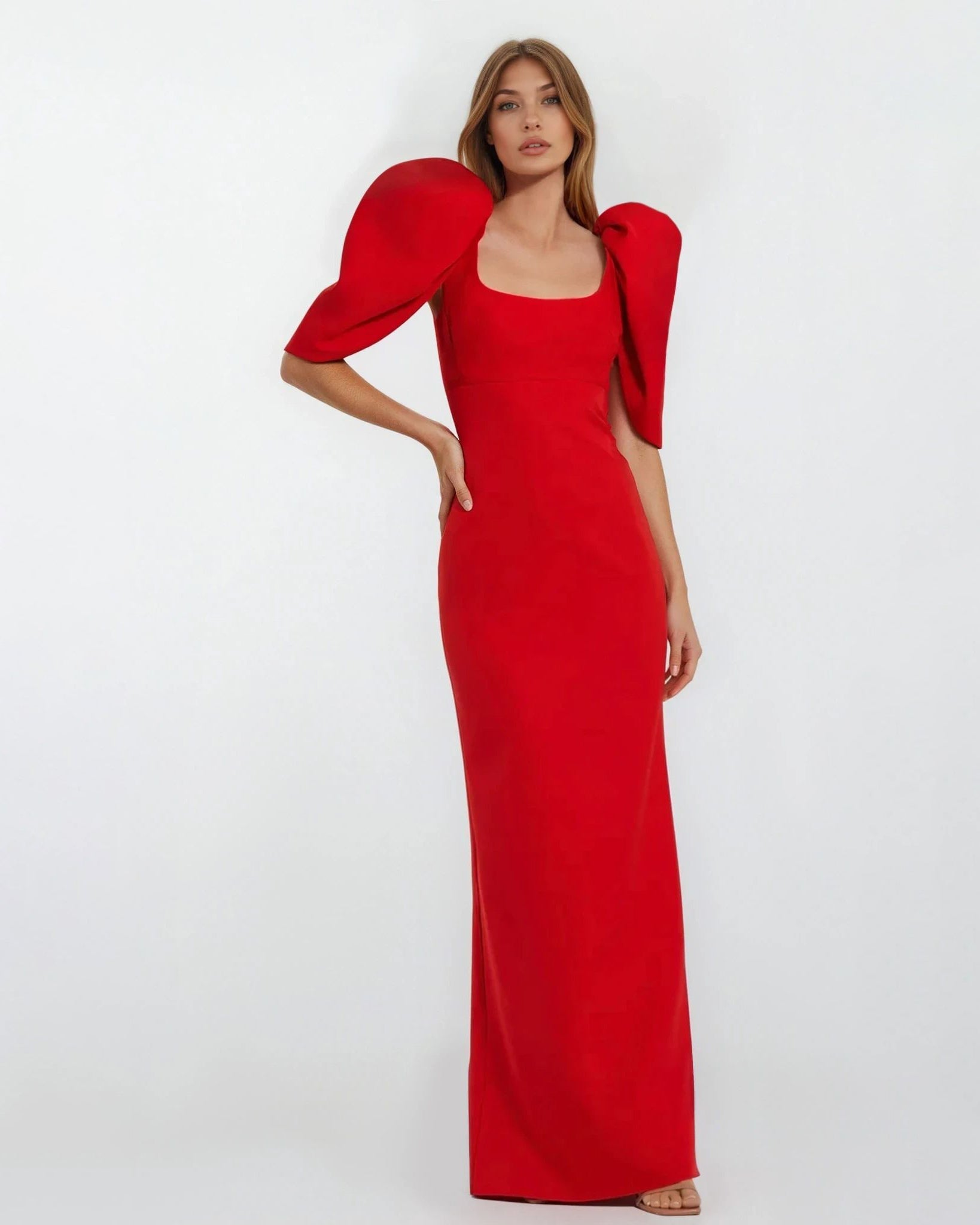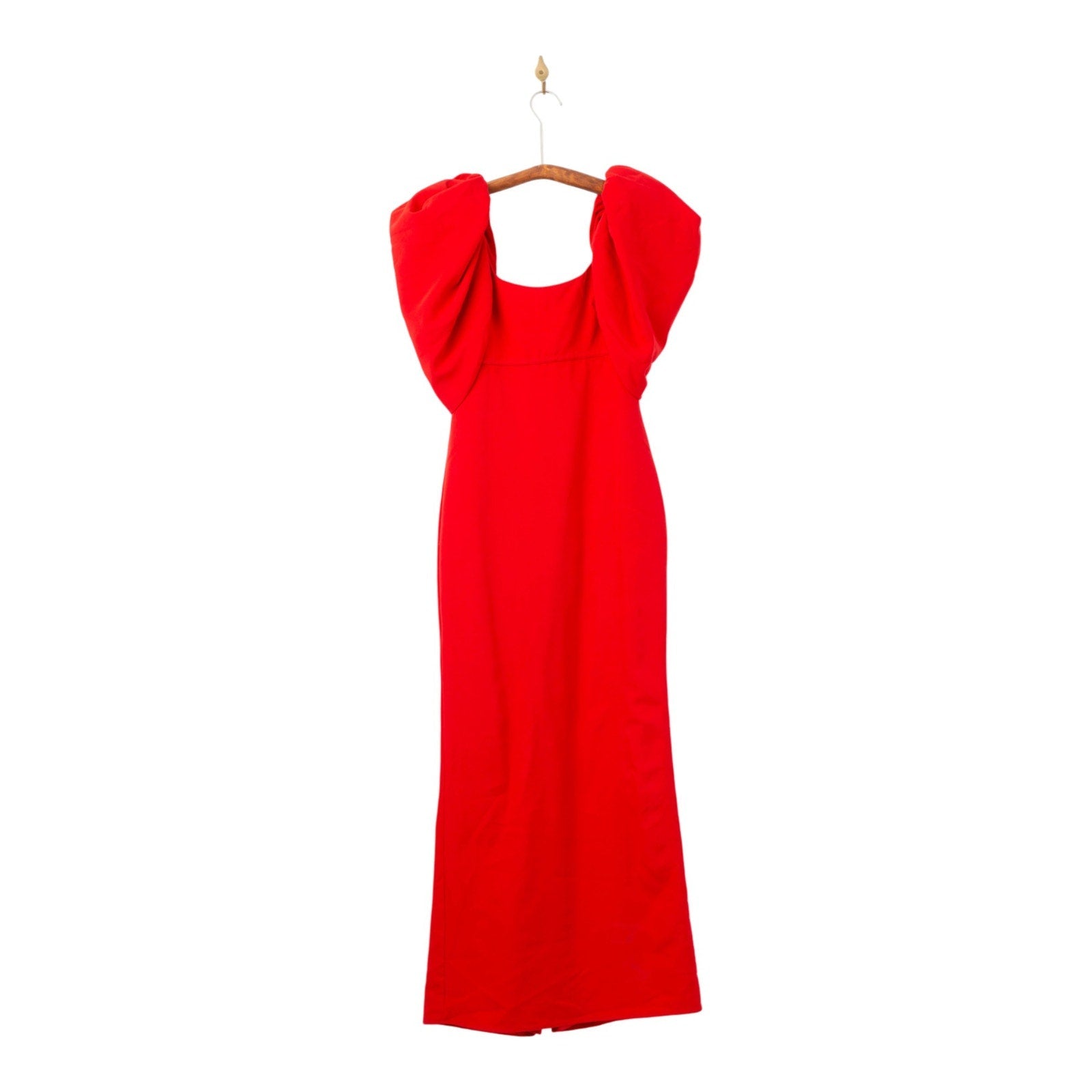 Ieena for Mac Duggal Red Crepe Puff-Sleeve Maxi Dress – Size 4 - Pre-owned