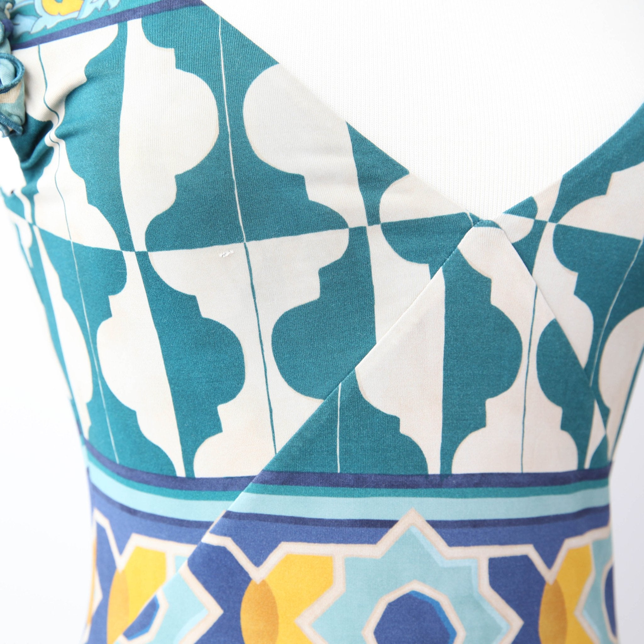 Blue graphic (74% Cotton, 19% Polyammide, 8% Elastane). Casual Dress. Vneck. Sleeveless. Side Zipper Closure.