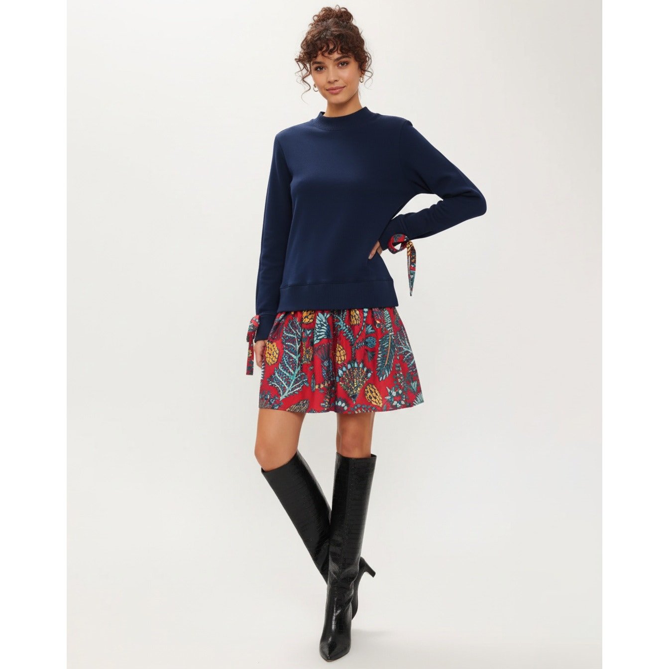 - Sleeves: Long sleeves with tie details