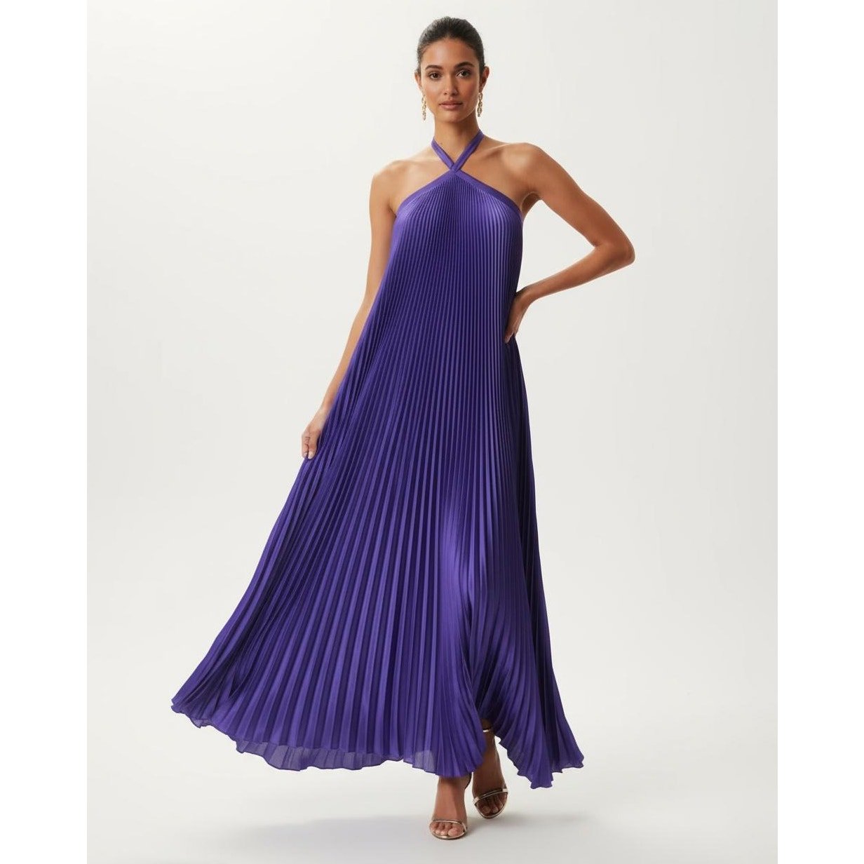 L’IDÉE Déesse Pleated Gown in Purple (Size 6)