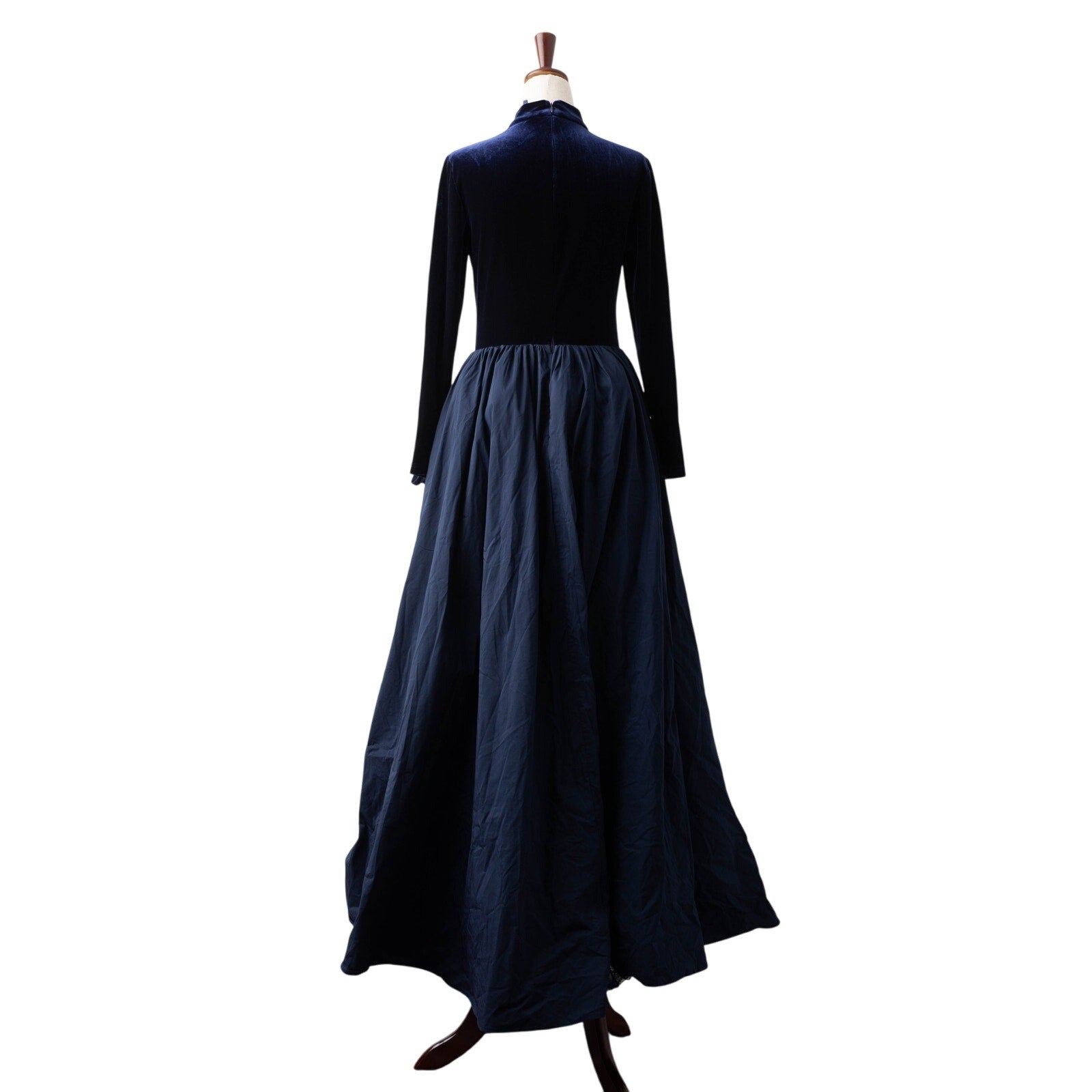 A vision of refined elegance, the Velvet High Neckline Gown by Marchesa Notte combines regal poise with modern sophistication. Crafted in luxurious blue velvet, this floor-length gown features a mock neckline, long sleeves, and a sleek silhouette that flatters with effortless grace. Perfect for galas, evening soirées, or any moment deserving of quiet glamour.