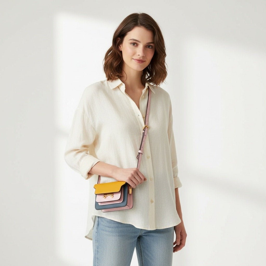 mini, leather, printed leather, brand logo, multicolor pattern, fully lined, framed closure, external pocket, internal pockets, daytime, contains non-textile parts of animal origin