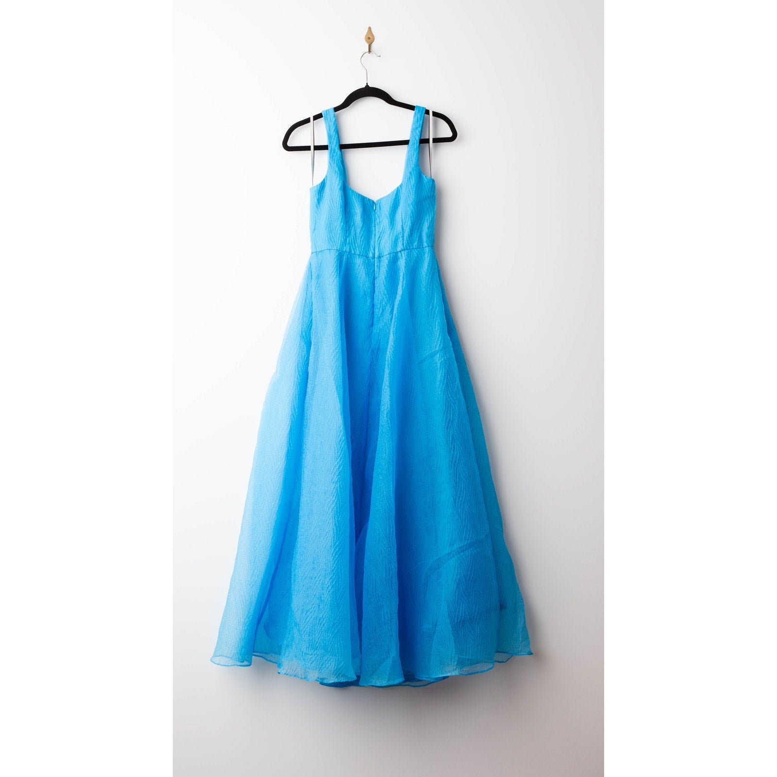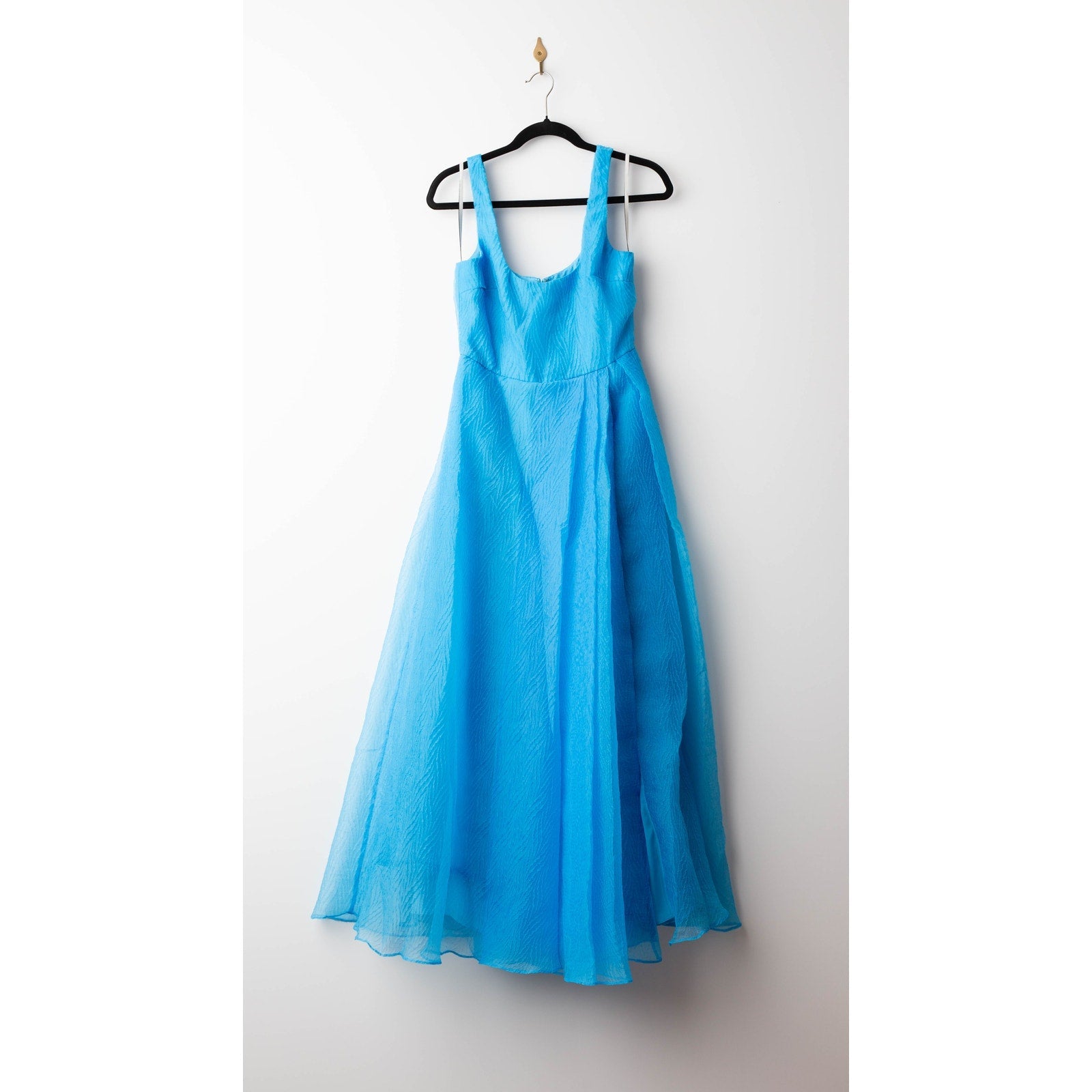 A captivating statement piece, this gown is designed in a mesmerizing shade of blue with ethereal organza fabric that radiates elegance and sophistication. Perfect for formal events, weddings, or special evenings.