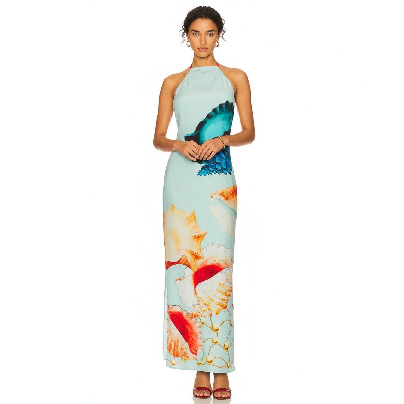 Effortlessly elegant, the Murex Mist Vega Dress by Muma World is crafted from luxurious silk in a soft mist hue. Featuring a halter neckline, wrap-around silhouette, and draped back, this gown blends minimalism with sophistication — perfect for weddings, soirées, or refined evenings out.