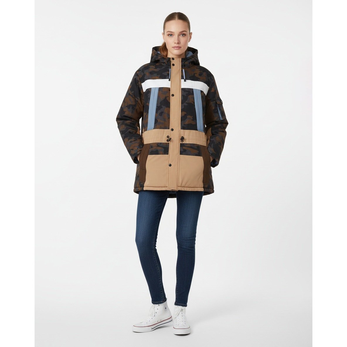 Go from city streets to mountain peaks in this sporty-cool Munthe coat, blending classic camouflage with bold contrasting trim. Lightweight yet structured, this statement outerwear piece brings both function and style to your winter wardrobe.