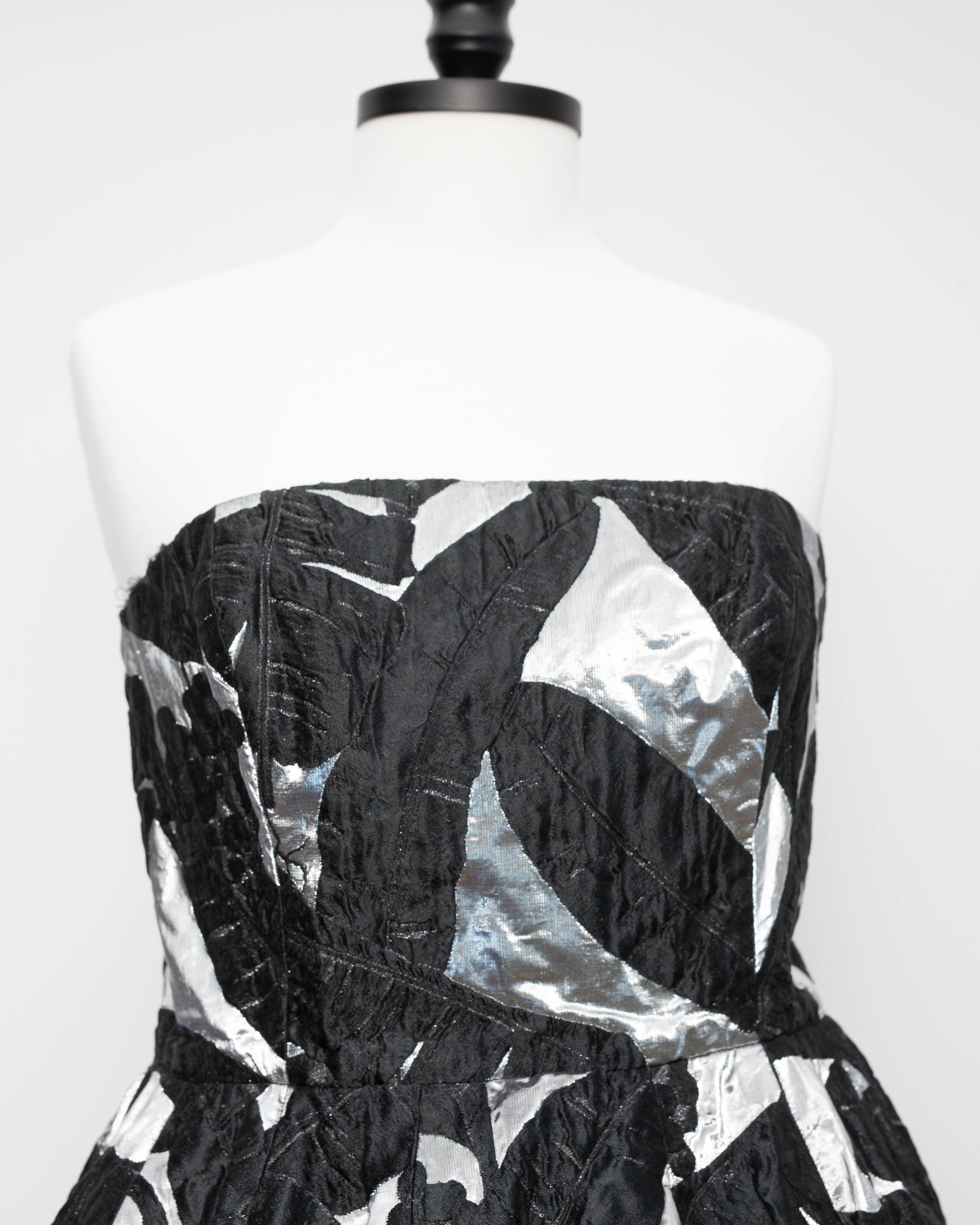 Oscar de la Renta Black Strapless Jacquard Midi Dress – Size 10