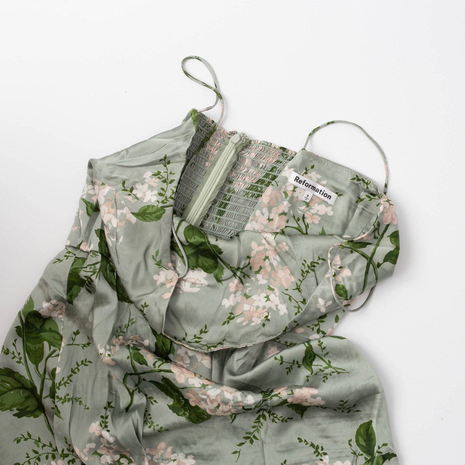 Reformation Frankie Silk Gown in Green Floral – Pre-Owned Size 8