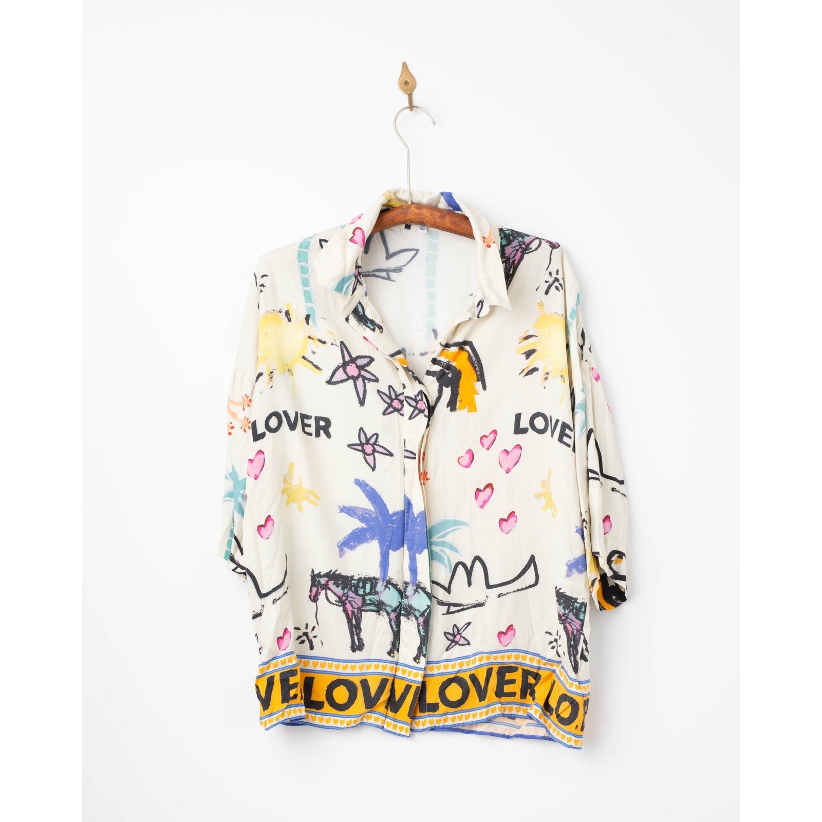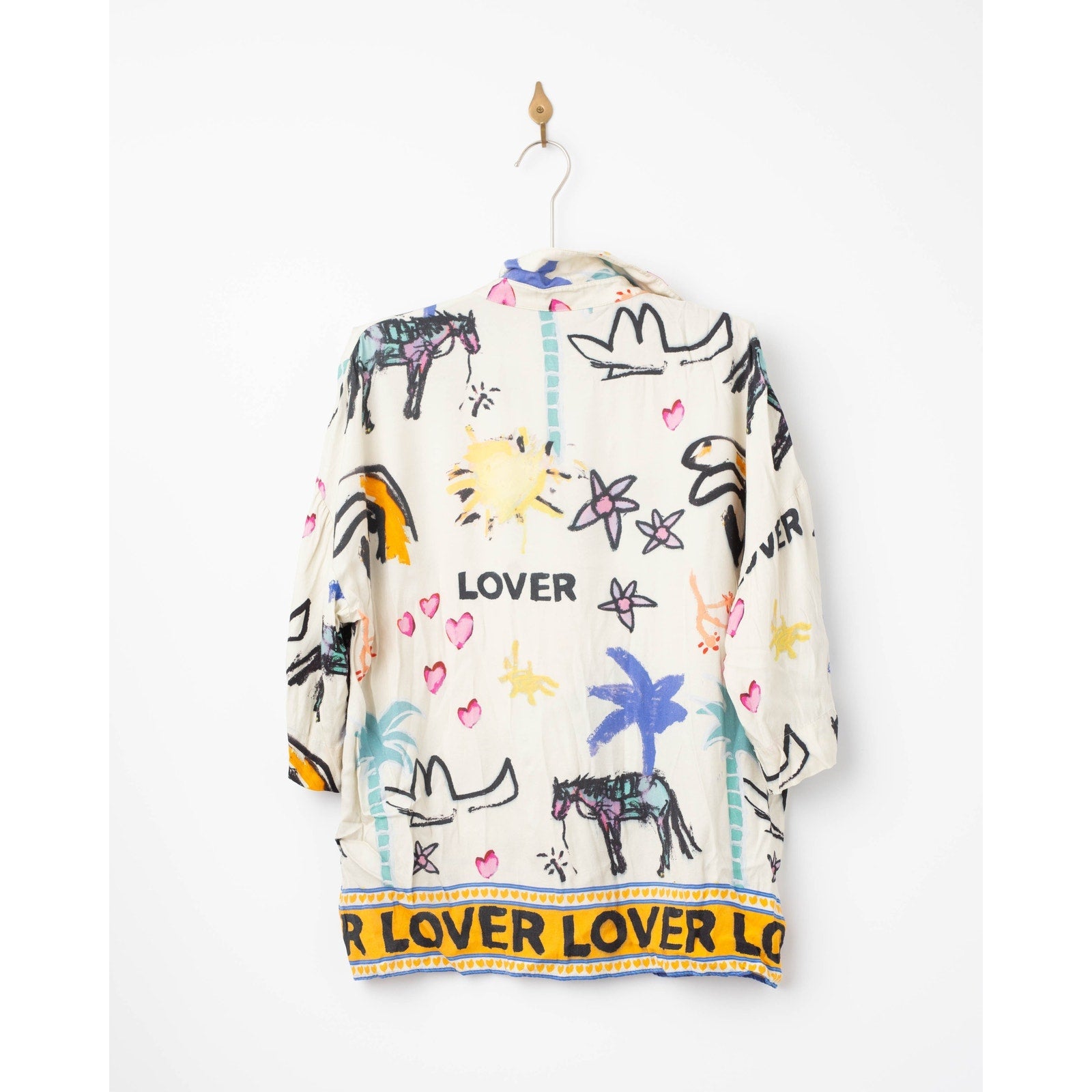 With its collared neckline, 3/4 sleeves, and classic front button closure, the Lover Shirt blends artistic style with timeless tailoring. Whether paired with denim, trousers, or a skirt, it brings a polished yet relaxed feel to any look.