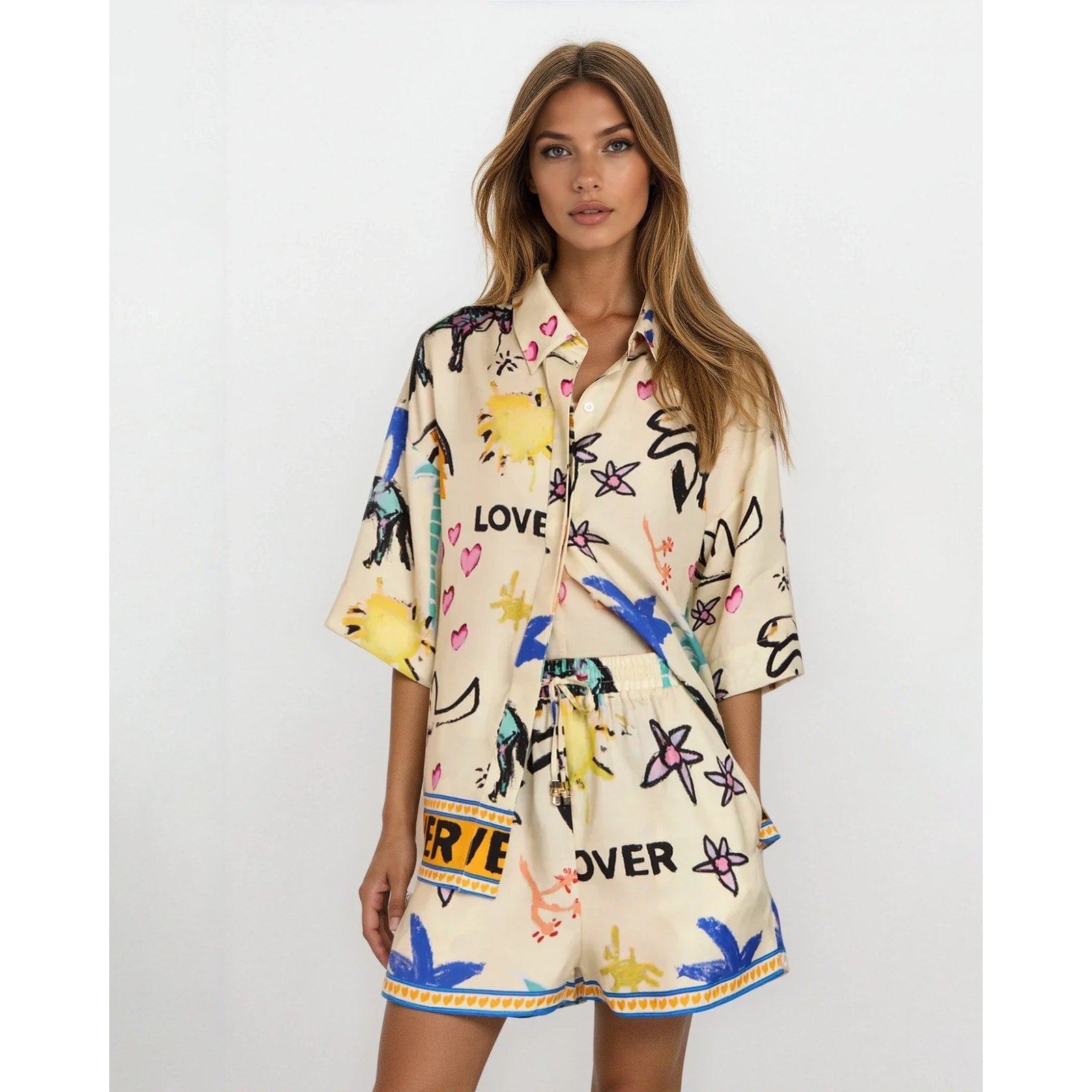 Add a pop of color and effortless sophistication to your wardrobe with the ROMY Lover Shirt, a beautifully designed blouse featuring a vibrant multicolored abstract print. Crafted from a soft blend of 58% viscose and 42% rayon, this top drapes elegantly and offers lightweight comfort perfect for everyday wear.