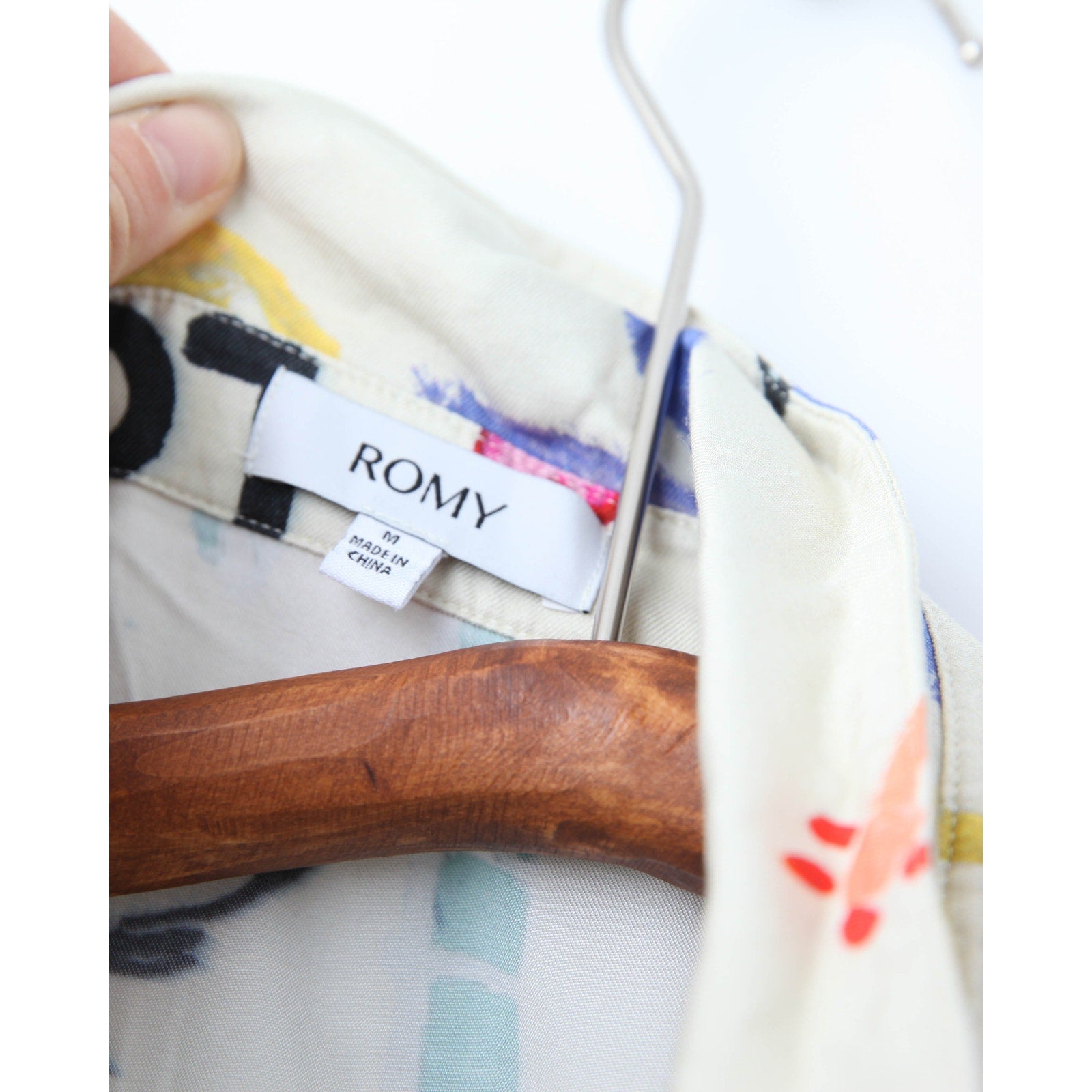 ROMY Lover Abstract Print Shirt – Multicolored Viscose Rayon Button-Down Top-Pre-Owned