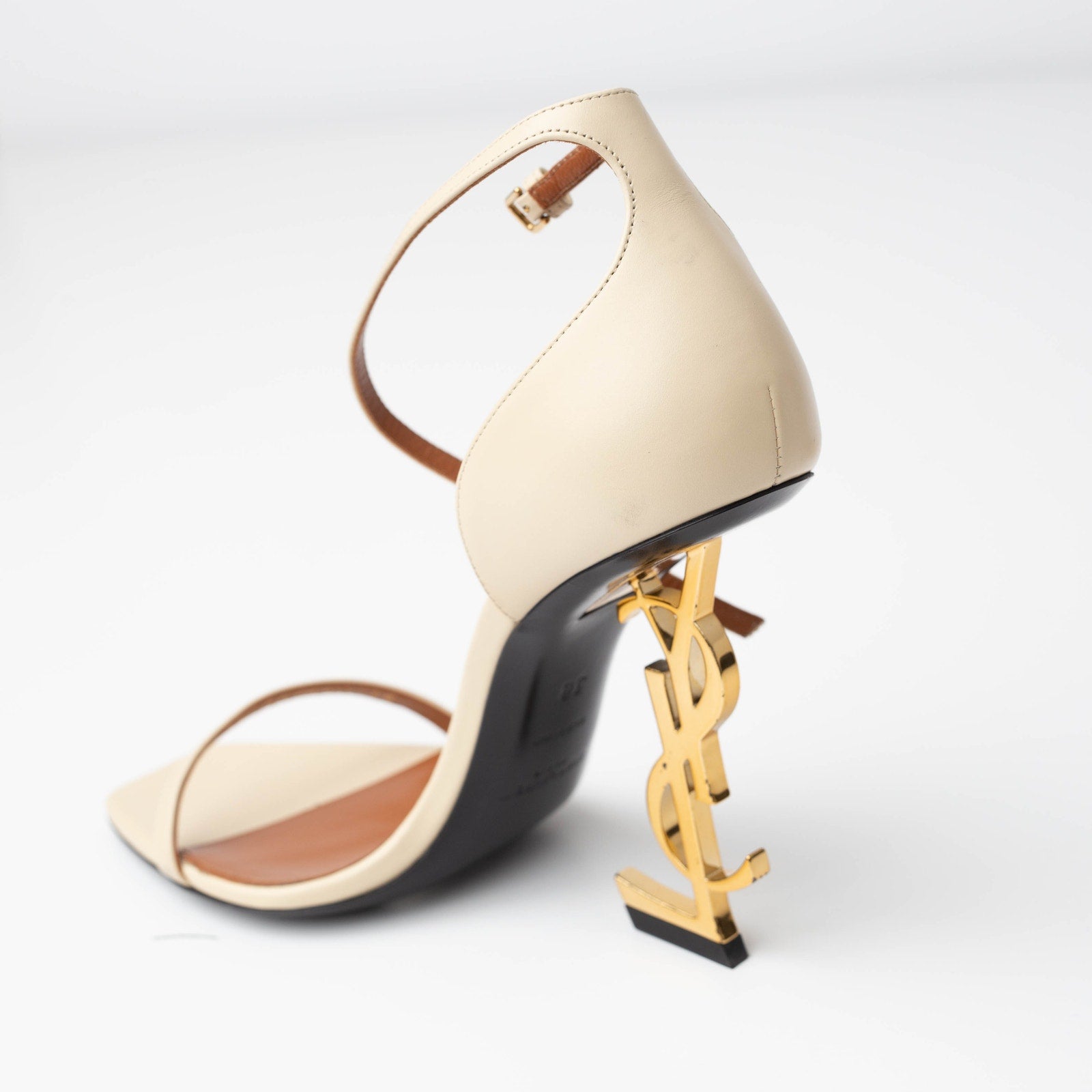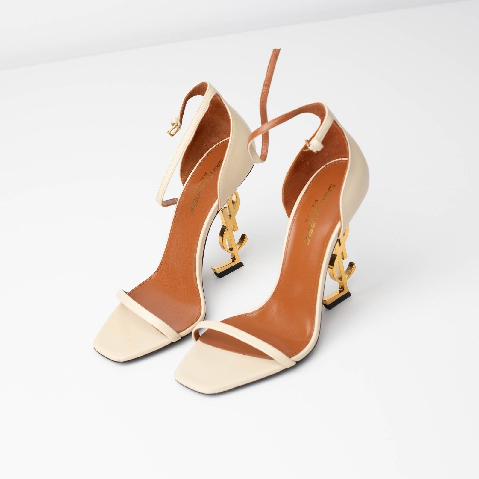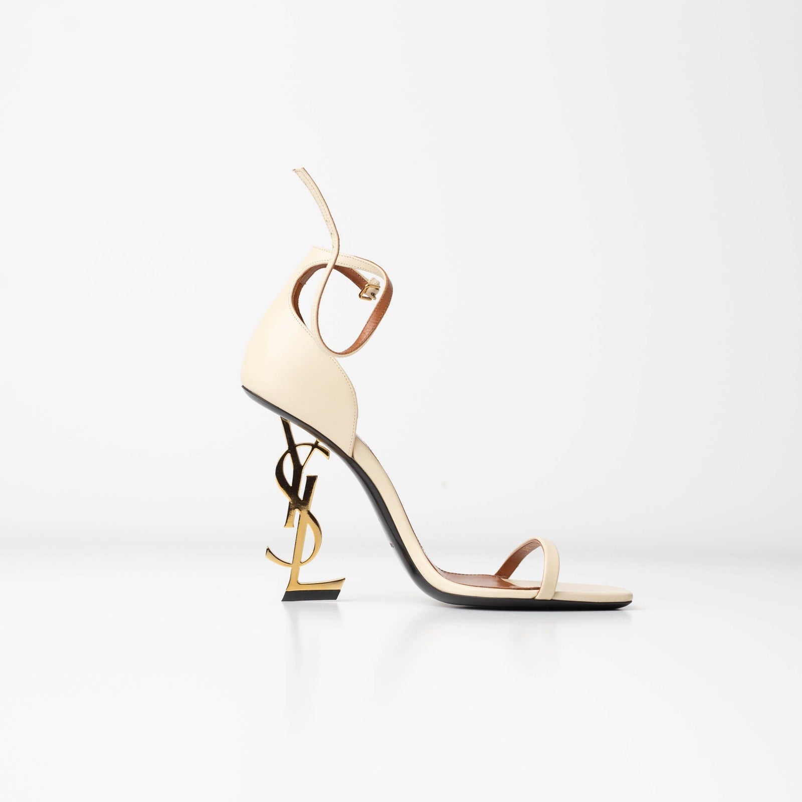 An icon of modern glamour, the Saint Laurent Opyum Sandals feature a sculptural YSL monogram heel that redefines sophistication. Crafted in smooth black lambskin with gold-toned hardware, this pair perfectly balances edge and elegance — a true statement in luxury footwear.