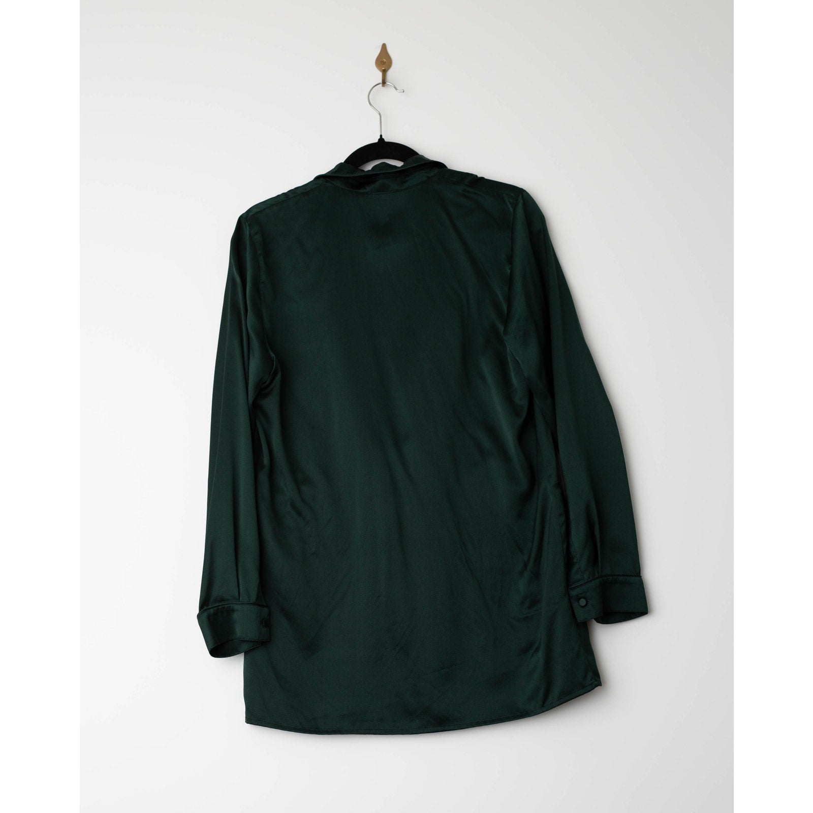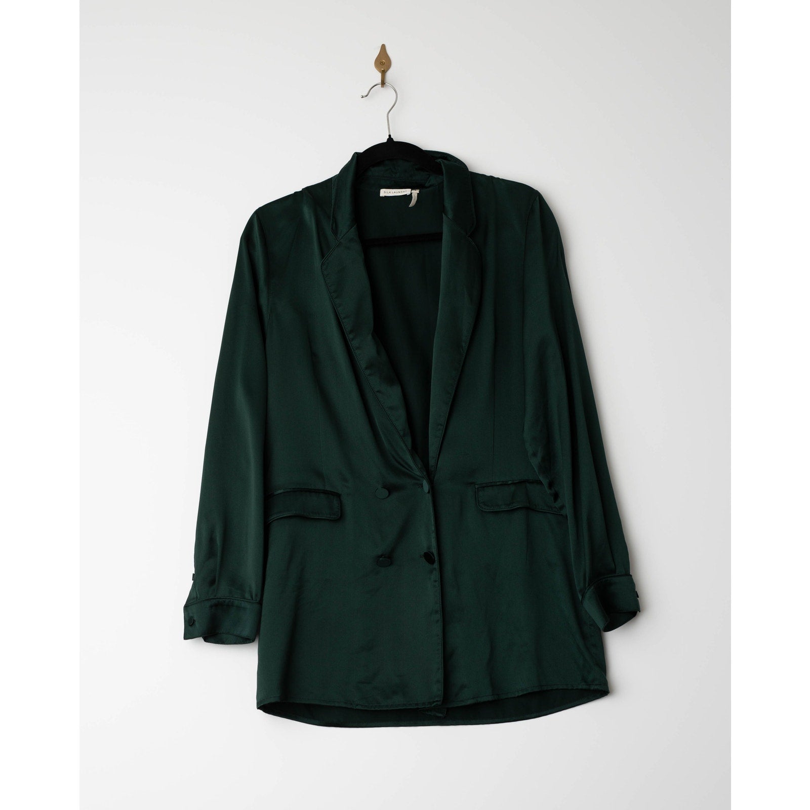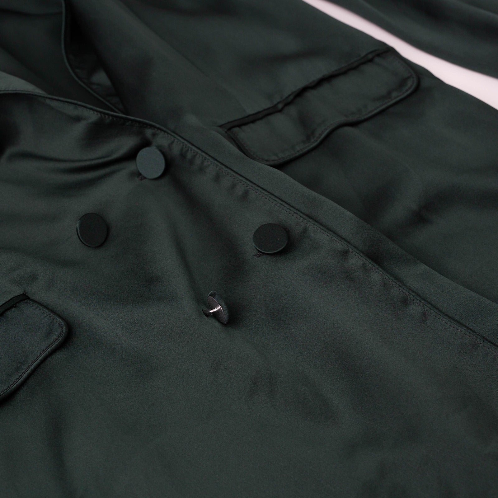 Green (100% Silk Satin). Jacket. Long Sleeve. Front button closure.