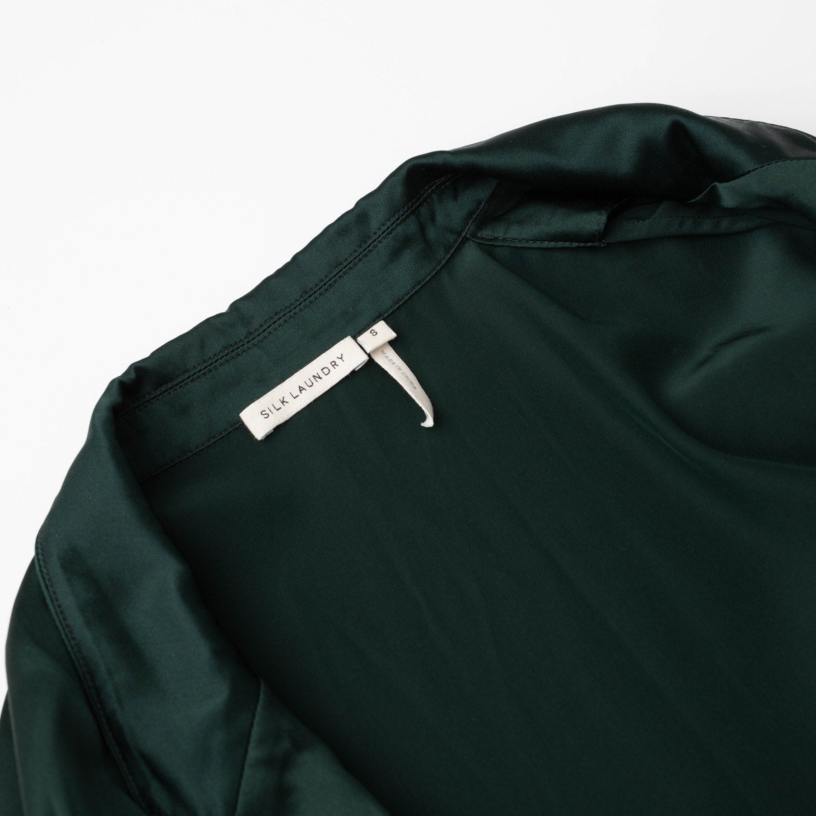 Silk Laundry Relaxed 100% Silk Blazer in Dark Green