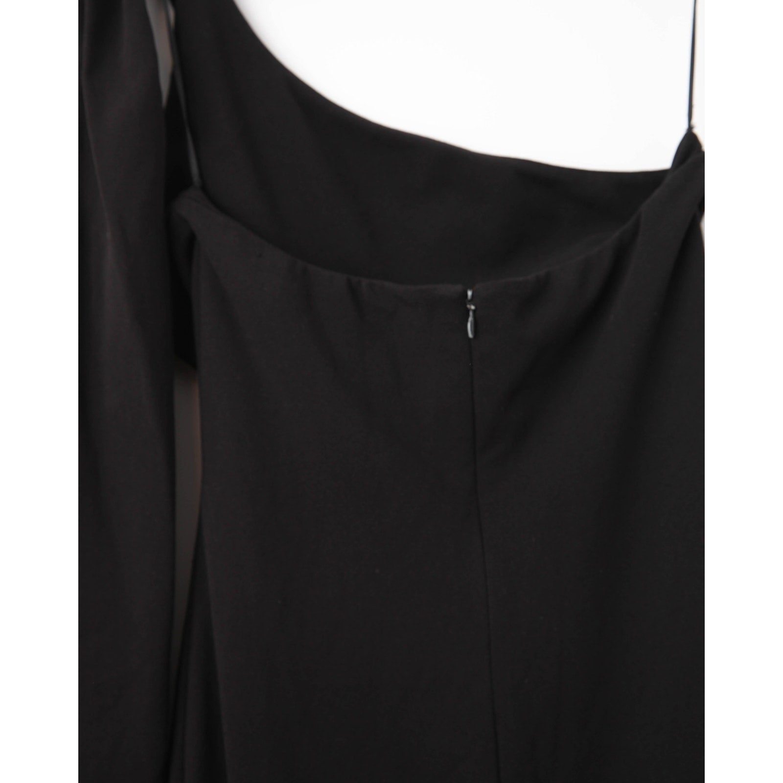 Simply chic without trying, the Solace London Saren Maxi Dress embodies modern sophistication. Crafted from structured black crepe, it features a dramatic spliced one-shoulder neckline, a sleek long sleeve, and an open back — the perfect minimalist statement for any black-tie event or evening occasion.