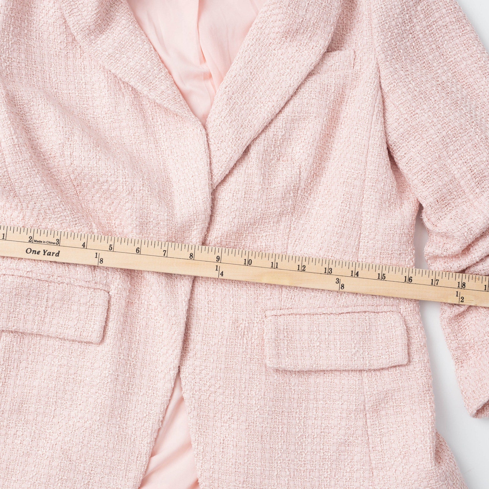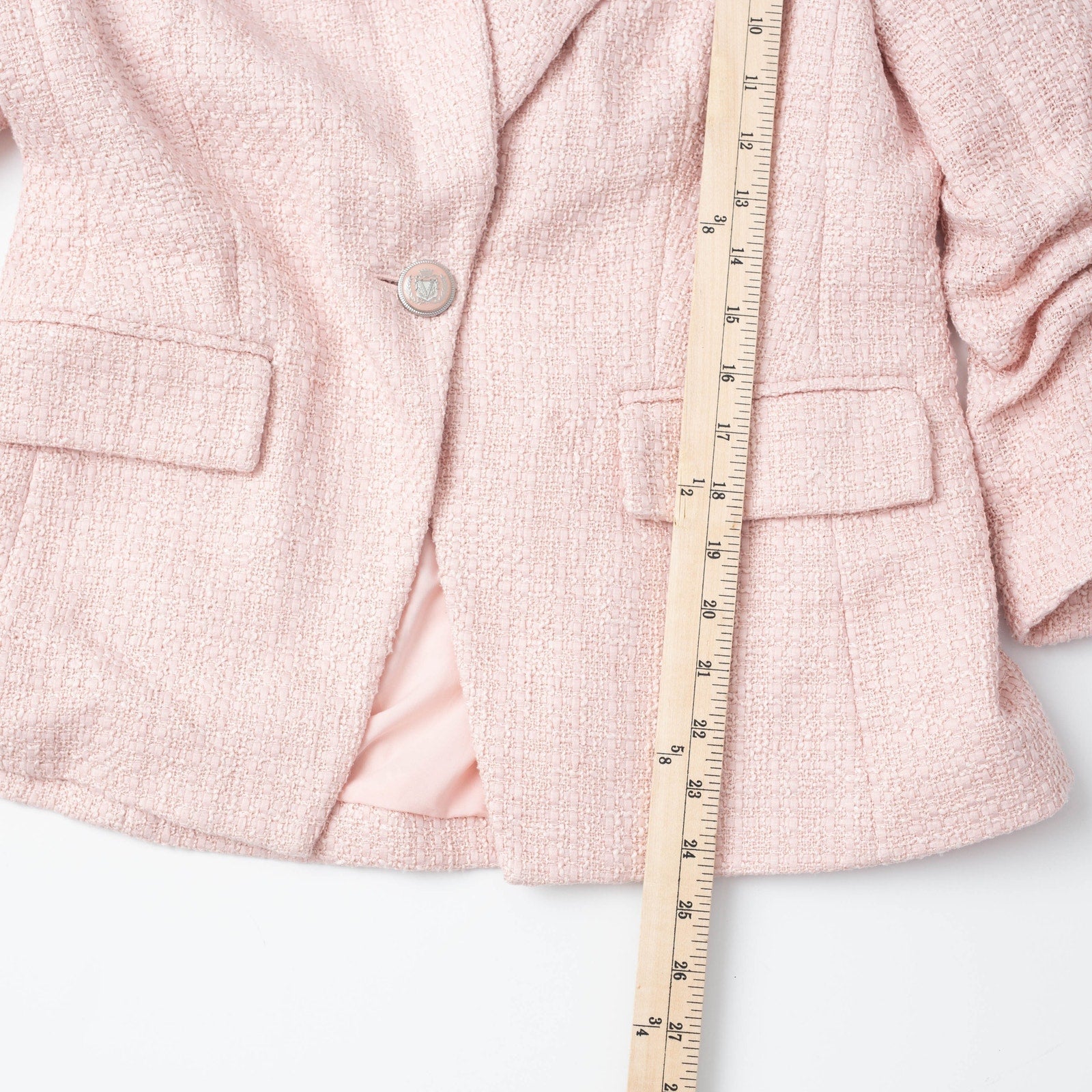 Pink (00% Polyester). Jacket. 3/4 Sleeve. Front button closure. Shoulder to hemline length: 26.5". Imported.