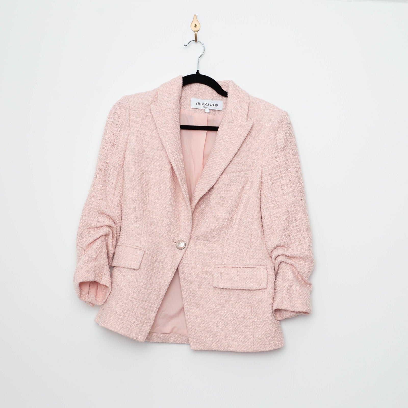 The Veronica Beard Pink Ryland Dickey Jacket offers a tailored fit with a polished, modern feel.